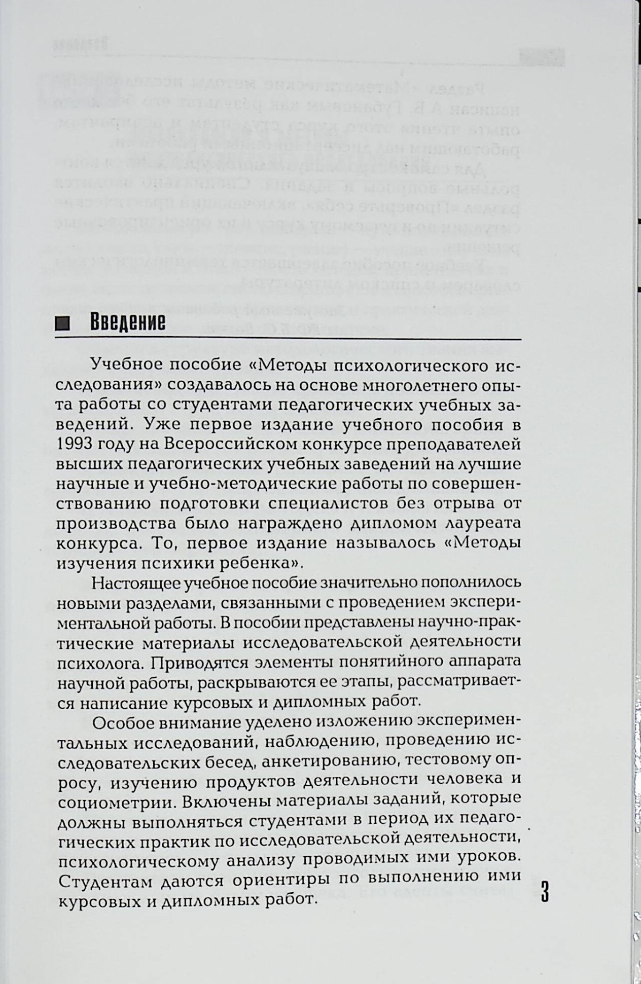 В учебном пособии рассматриваются методы психологического исследования: эксперимент, наблюдение, беседа, анкетирование, тестирование, социометрия и др. Учебные задачи, практические задания помогут практическому овладению методами исследования. Пособие предназначается для работников педагогических учебных заведений, студентов. Может быть использовано родителями в системе повышения квалификации и профессионального самоопределения. Второе издание этого пособия удостоено диплома лауреата Всероссийского конкурса преподавателей высших педагогических учебных заведений на лучшие научные и учебно-методические работы по совершенствованию подготовки специалистов без отрыва от производства.