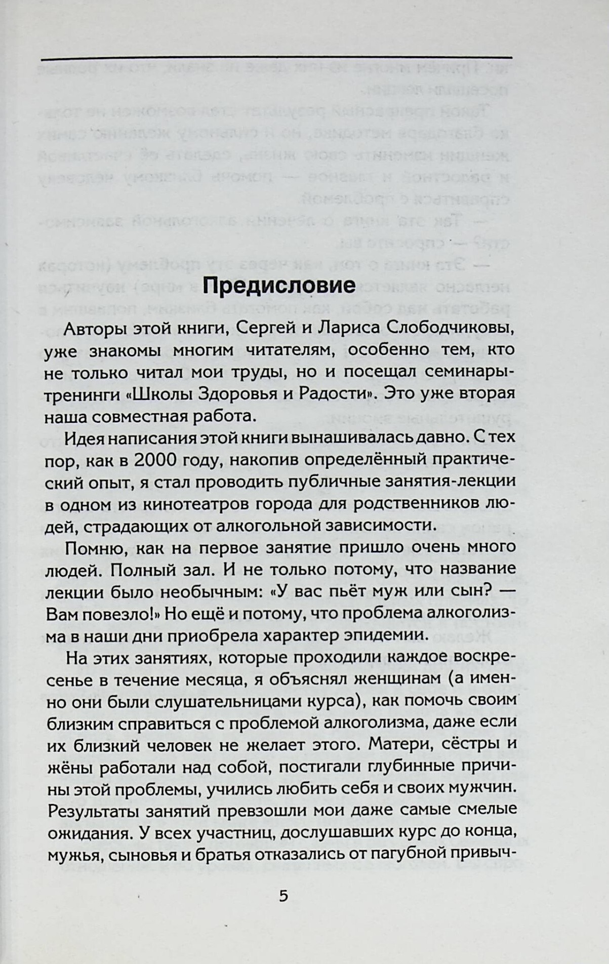 Книга Сергея и Ларисы Слободчиковых — луч надежды для всех, кто так или иначе страдает от алкоголизма и других видов зависимости, — и для тех, кто пьет, и для тех, кто втянут (или позволил себя втянуть?) в порочный круг пьянства своих близких. Их необычный подход к проблеме, основанный на новом, целостном мировоззрении, уже позволил помочь многим тысячам людей, утративших веру в обычные способы борьбы с зависимостью, и достигнутые ими успехи стали лучшим стимулом для создания этой книги.