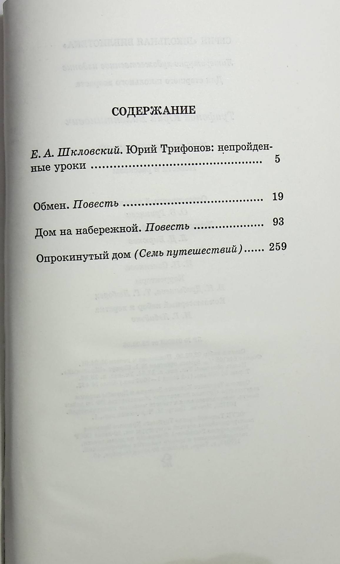 В сборник известного мастера прозы 1970-х годов Ю.Трифонова вошли повести "Обмен", "Дом на набережной" и цикл рассказов "Опрокинутый дом".