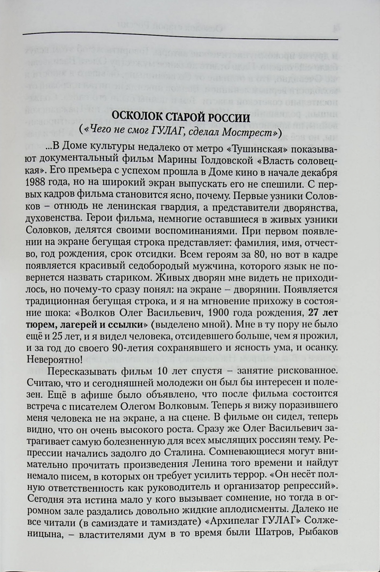 "Погружение во тьму. Из пережитого" Волков Олег