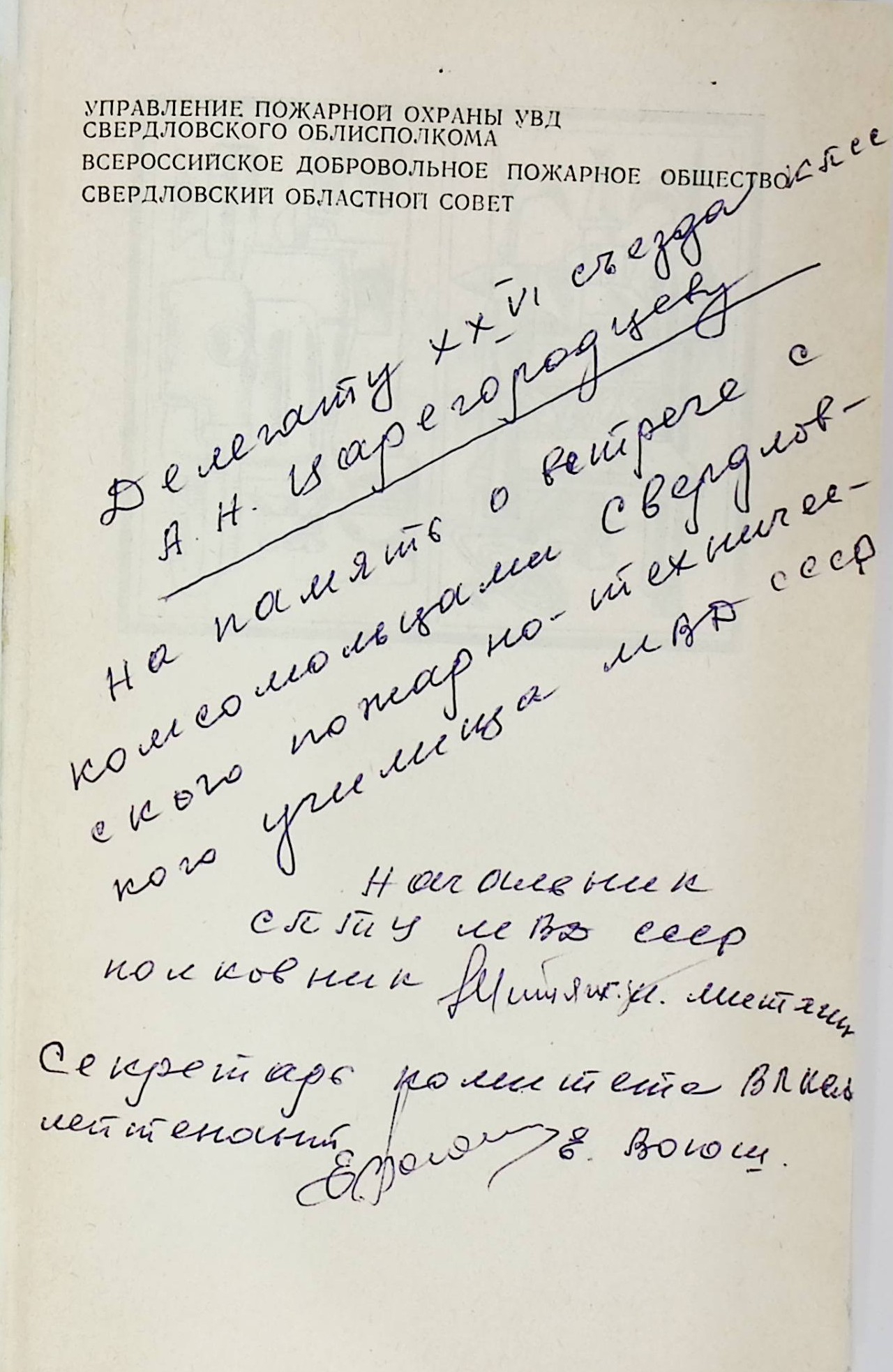 Очерки по истории пожарного дела на Урале.Дарственная надпись на титульном листе.