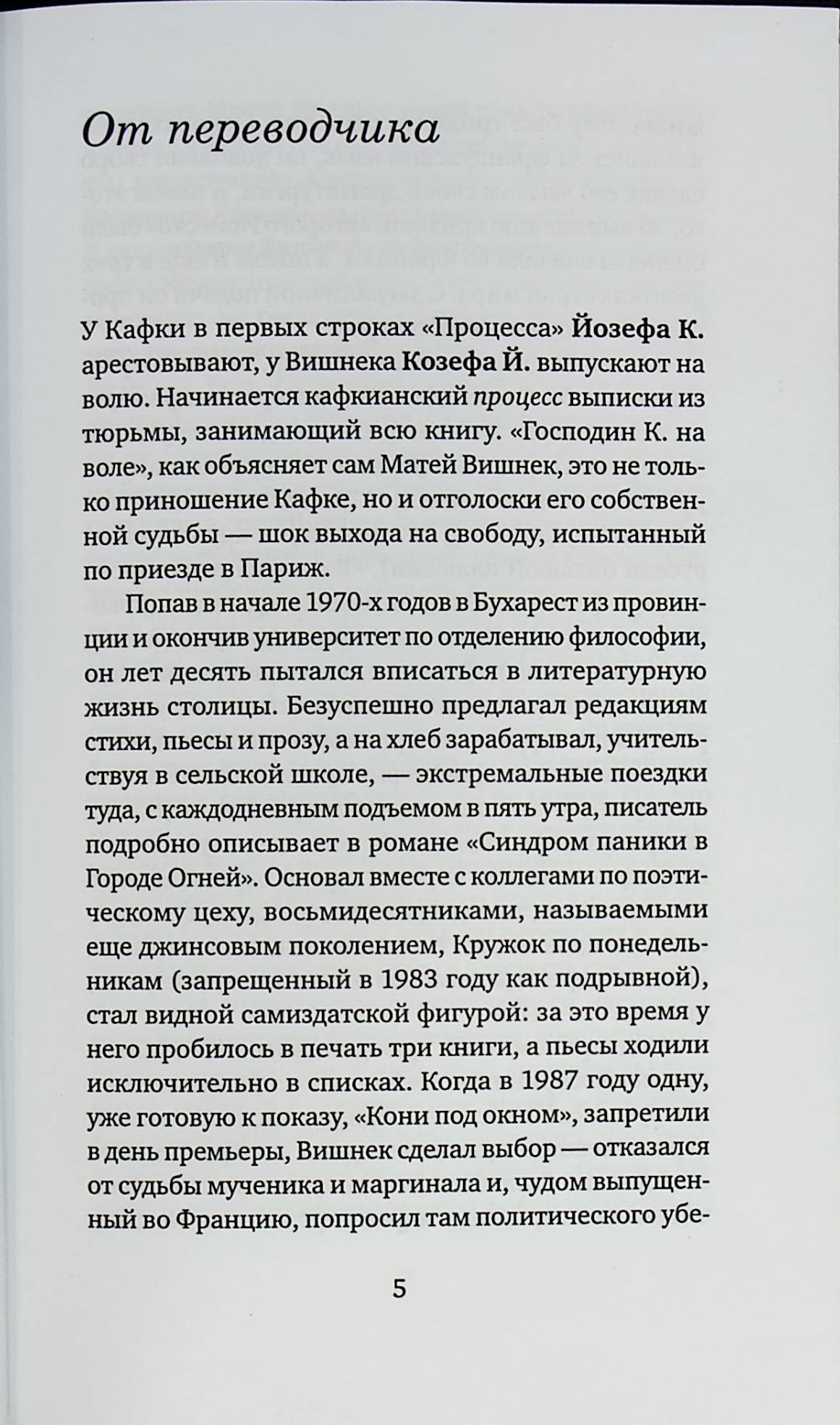 Предлагаемый роман - реплика на "Процесс" Франца Кафки, но Кафка наизнанку. У Кафки Йозефа К. арестовывают, у Вишнека Козефа Й. выпускают на свободу.