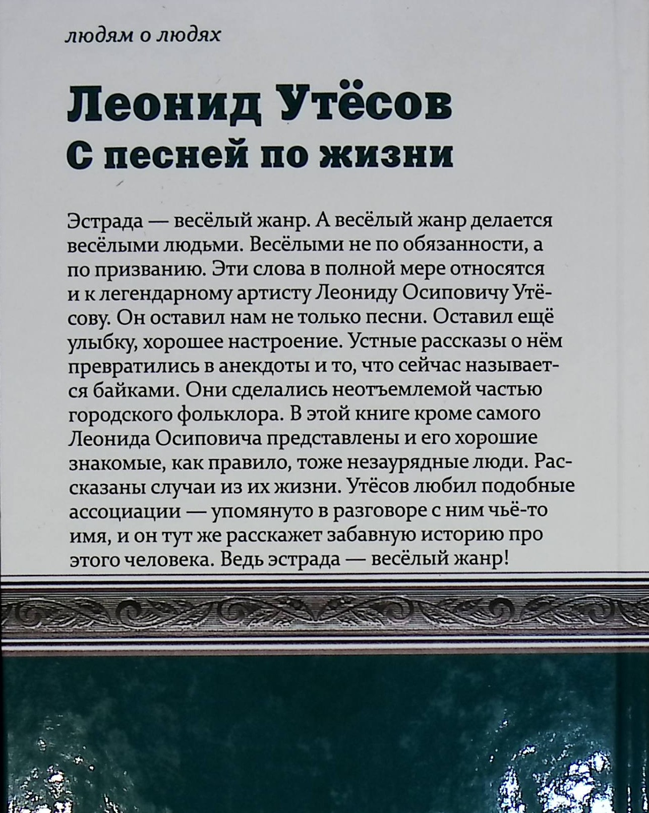 Эстрада - веселый жанр. А веселый жанр делается весёлыми людьми. Весёлыми не по обязанности, а по призванию. Эти слова в полной мере относятся и к легендарному артисту Леониду Осиповичу Утёсову. Он оставил нам не только песни. Оставил ещё улыбку, хорошее настроение. Устные рассказы о нём превратились в анекдоты и то, что сейчас называется байками. Они сделались неотъемлемой частью городского фольклора. В этой книге кроме самого Леонида Осиповича представлены и его хорошие знакомые, как правило, тоже незаурядные люди. Рассказаны случаи из их жизни. Утёсов любил подобные ассоциации - упомянут в разговоре с ним чьё-то имя, и он тут же расскажет забавную историю про этого человека. Ведь эстрада - весёлый жанр!