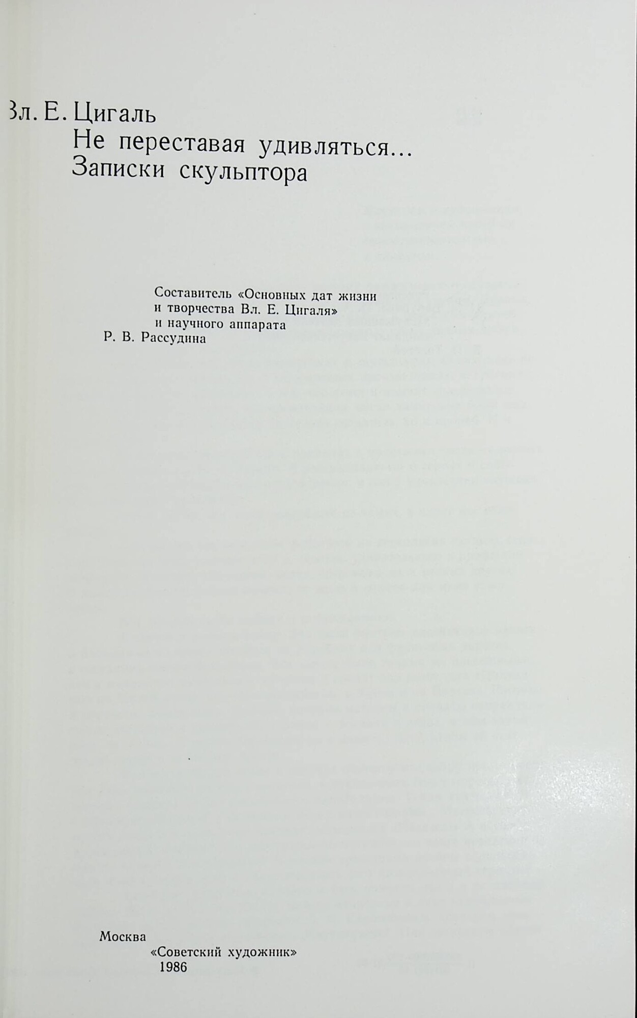 "Не переставая удивляться... Записки скульптора " Цигаль Вл. Е.