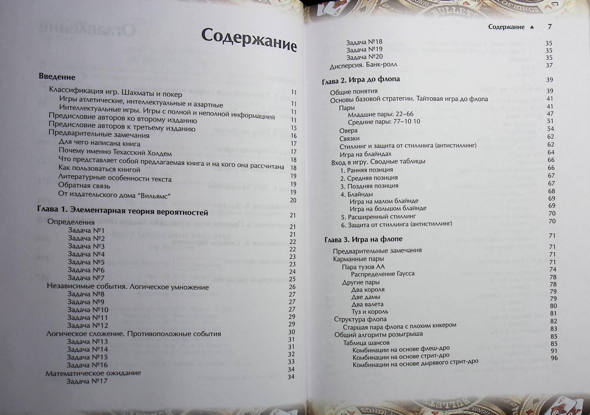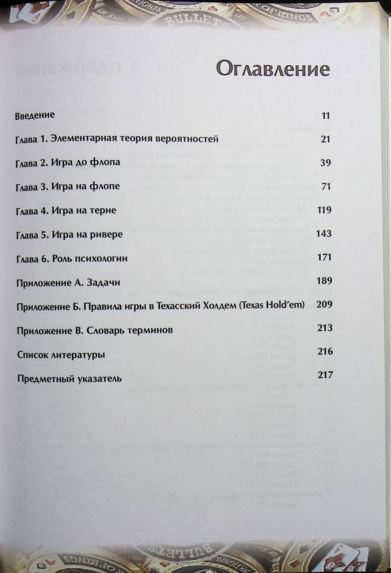 причем роль двух последних существенно больше. Именно аналитической составляющей покера и посвящена в основном эта книга. Работая над ней, авторы преследовали цель предоставить читателю возможность самостоятельно овладеть основами успешной игры в Техасский Холдем в формате Роt Limit или No-Limit - самая популярная разновидность покера, особую привлекательность которой придает тот факт, что официальный титул чемпиона мира по покеру и наиболее крупный денежный приз разыгрывается в турнире именно по этой разновидности. Тем не менее, предполагается, что начальное ознакомление читателя с покером уже произошло, и он знает правила игры вообще и Техасского Холдема в частности.