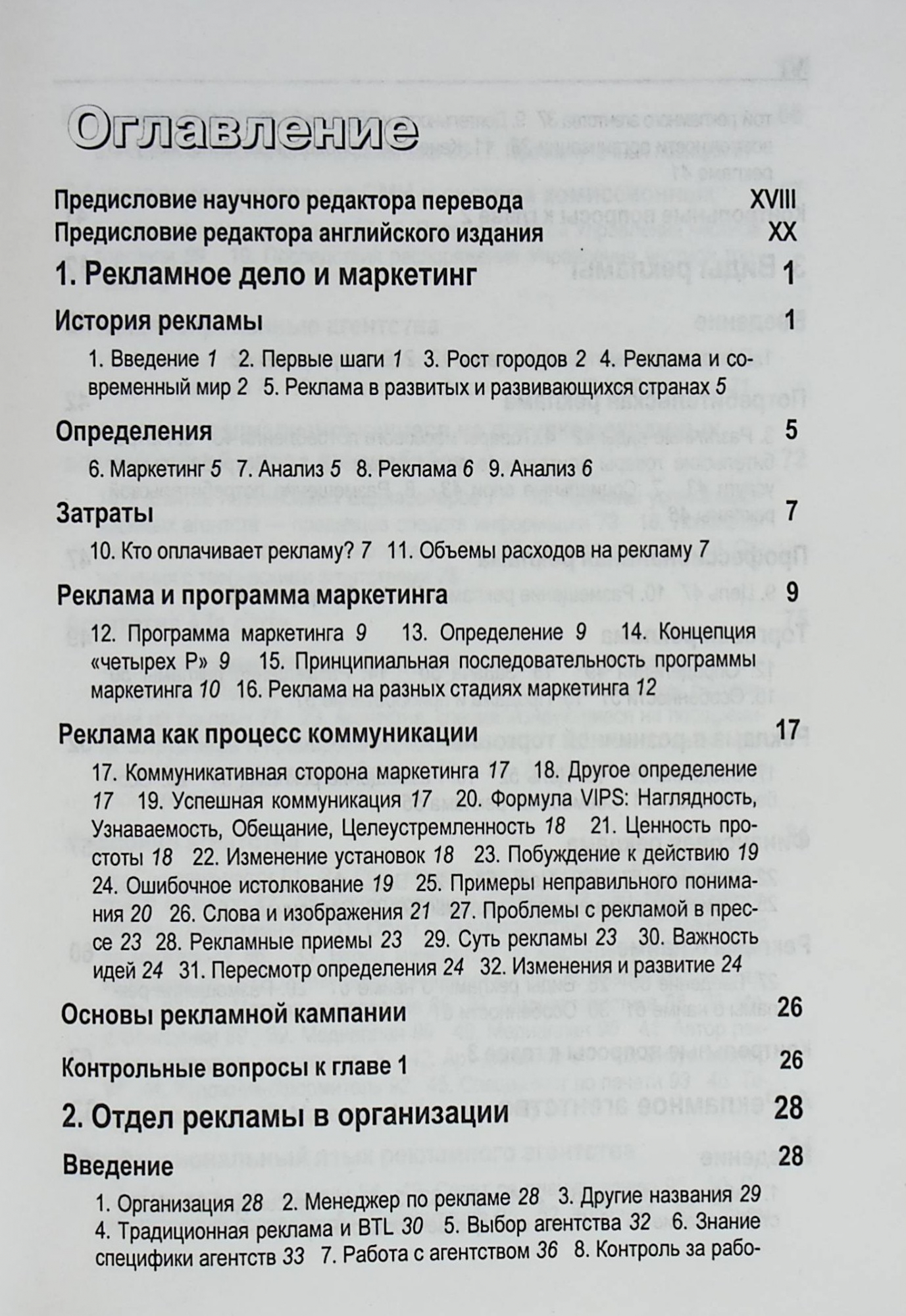 Эта книга - достаточно полное по тематике руководство в такой увлекательной сфере бизнеса, как рекламное дело. Хорошо систематизированная книга содержит описание конкретных прикладных исследований, примеры, иллюстрации, контрольные вопросы, словарь терминов. В 20 главах представлены такие темы, как виды рекламы, организация отдела рекламы, размещение рекламы, продвижение товара на рынок, спонсорство, почтовая реклама и прямой маркетинг, выставки; создание рекламы, оригинал-макет, дизайн; процесс печати, РЯ, закон и этика в рекламном деле, рекламодатель и Интернет и др.