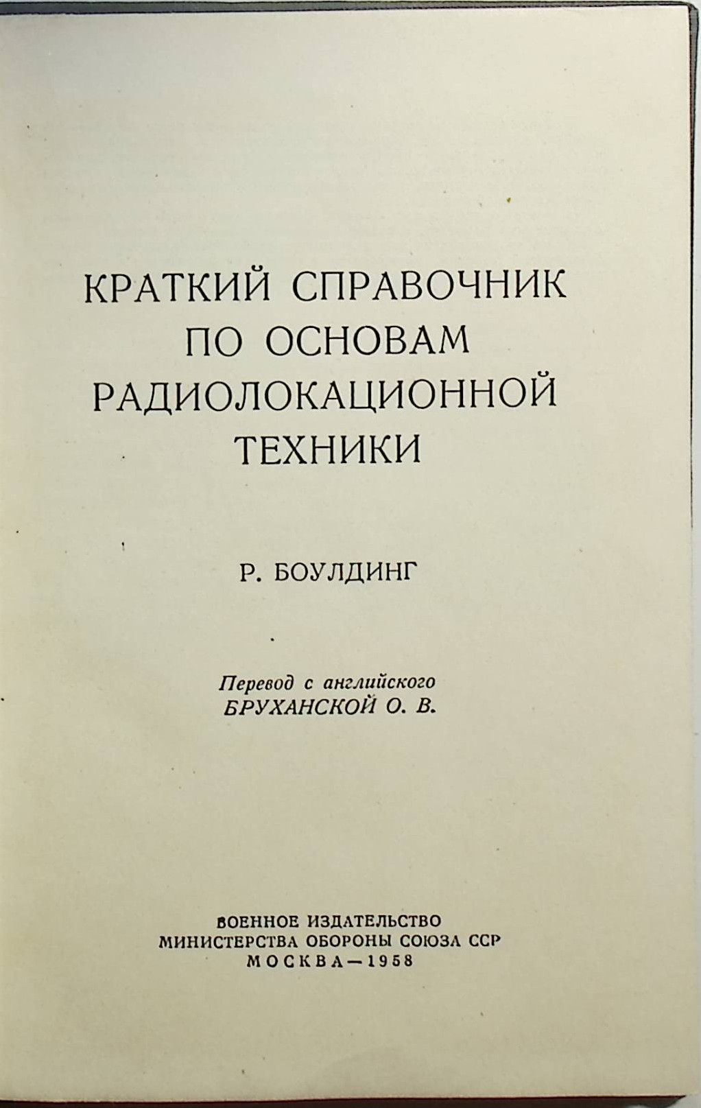 "Краткий справочник по основам радиолокационной техники" 1958г (мини формат) Боулдинг Р.