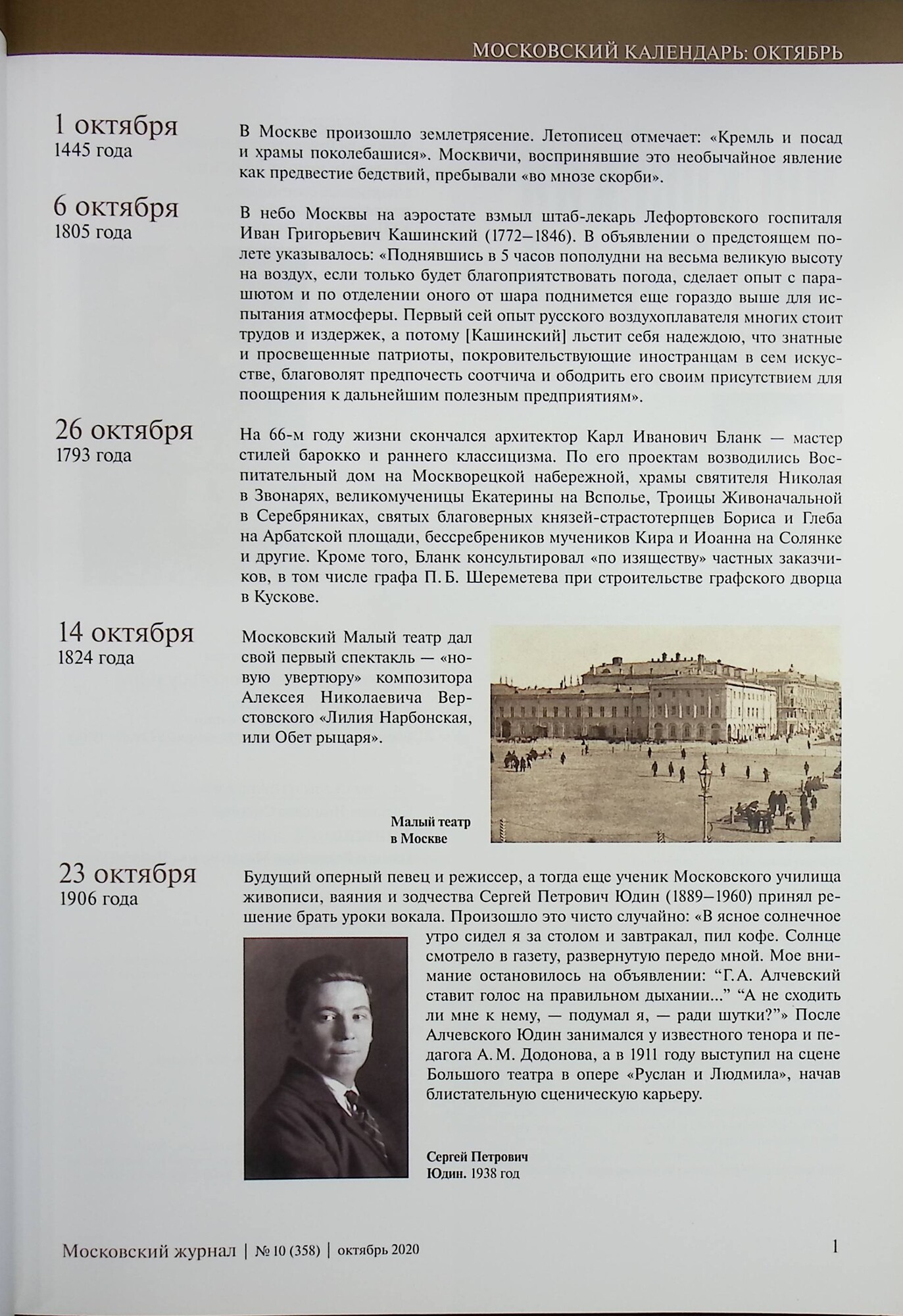 Московский Журнал. История государства Российского № 10 (358) 2020г