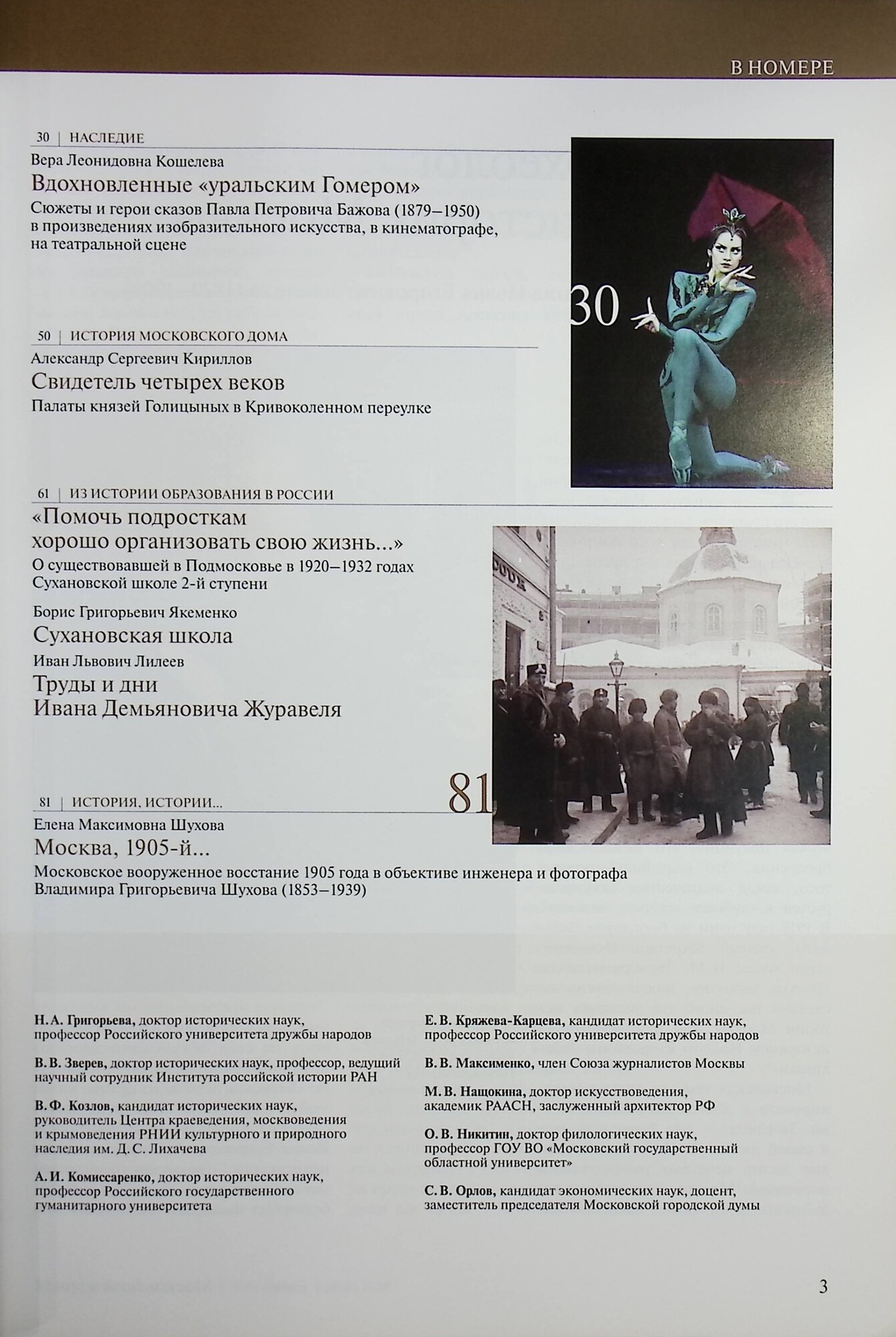 На страницах издания печатаются статьи о Москве, литературе, истории, краеведении и архитектуре, а также воспоминания, биографические очерки о людях, внёсших заметный вклад в развитие не только Москвы, но и России. Творческий девиз журнала: «В прошлом России ключ к её будущему».