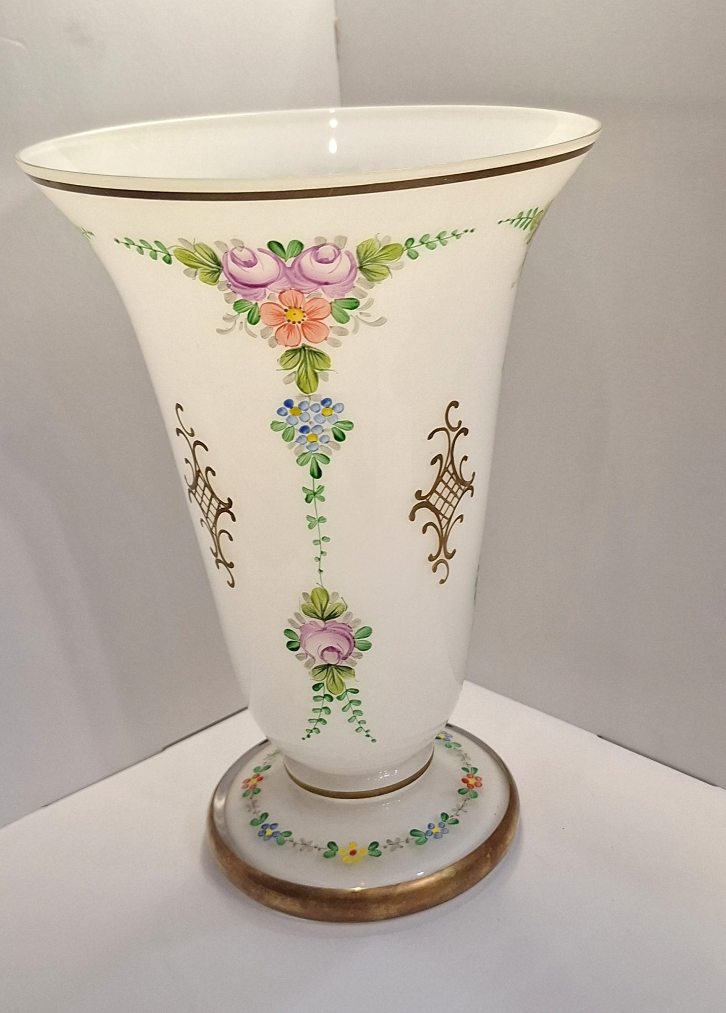 Ваза "Цветочный орнамент" Чехия,период СССР (Белое Молочное стекло, роспись)