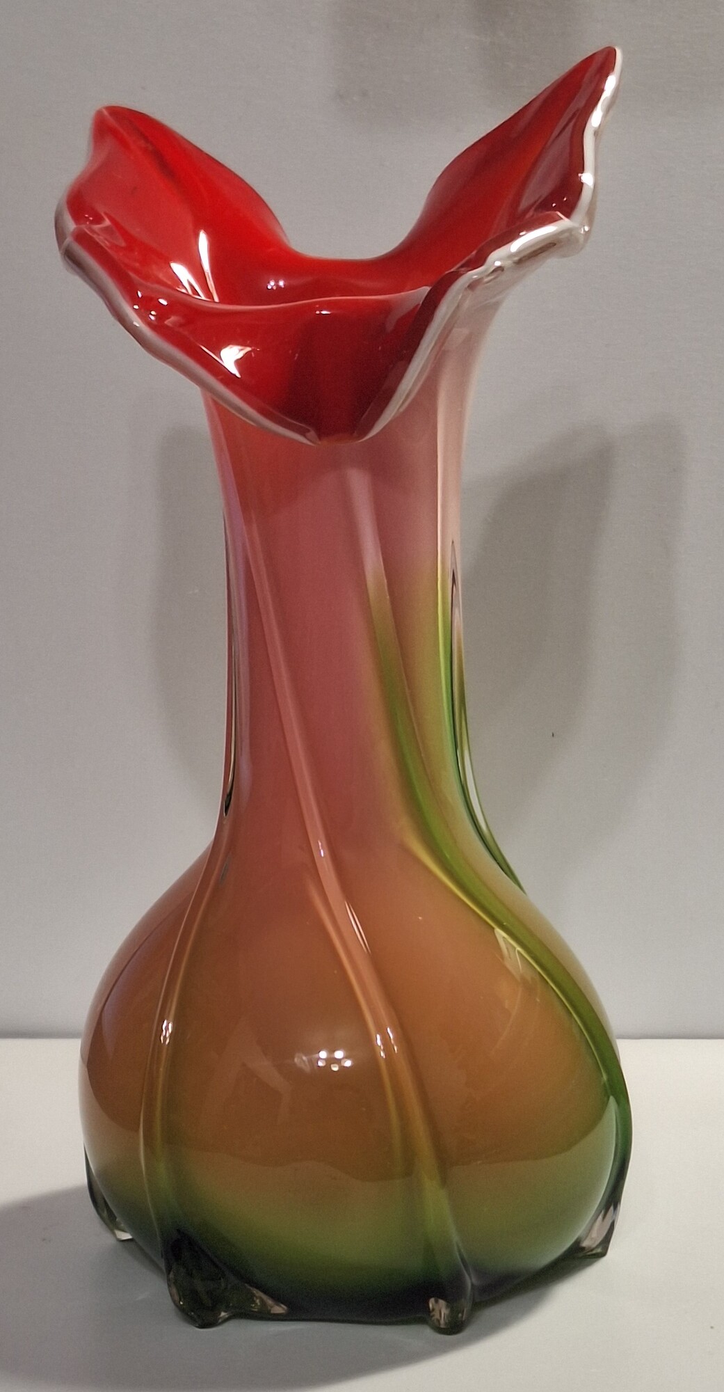 Ваза винтажная в форме тюльпана,выдутая вручную, разноцветная.