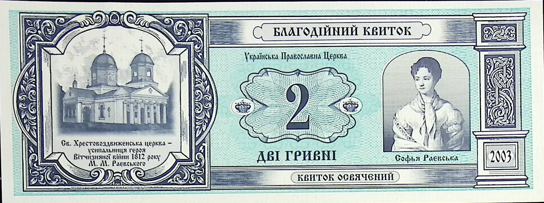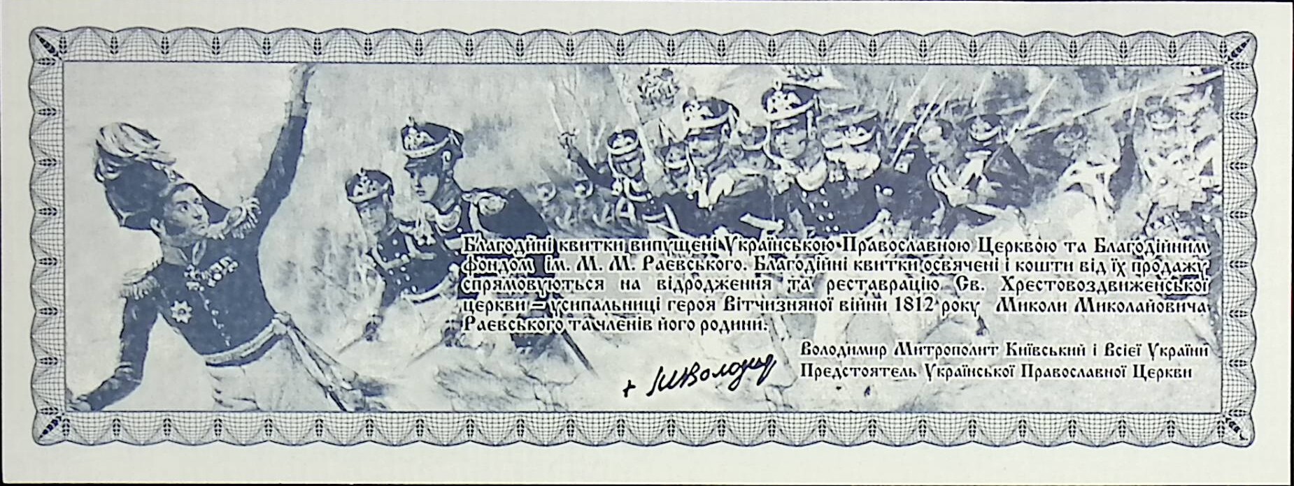 Благотворительный билет выпущен Украинской Православной Церкви Благотворительном фондом им. М.М. Раевского .