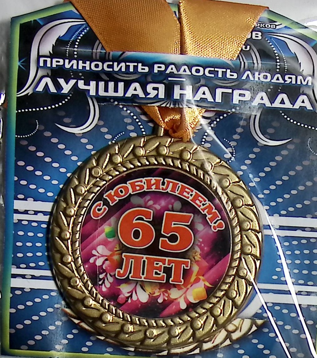 Подарочная медаль "С юбилеем 65 лет" , D-65 мм