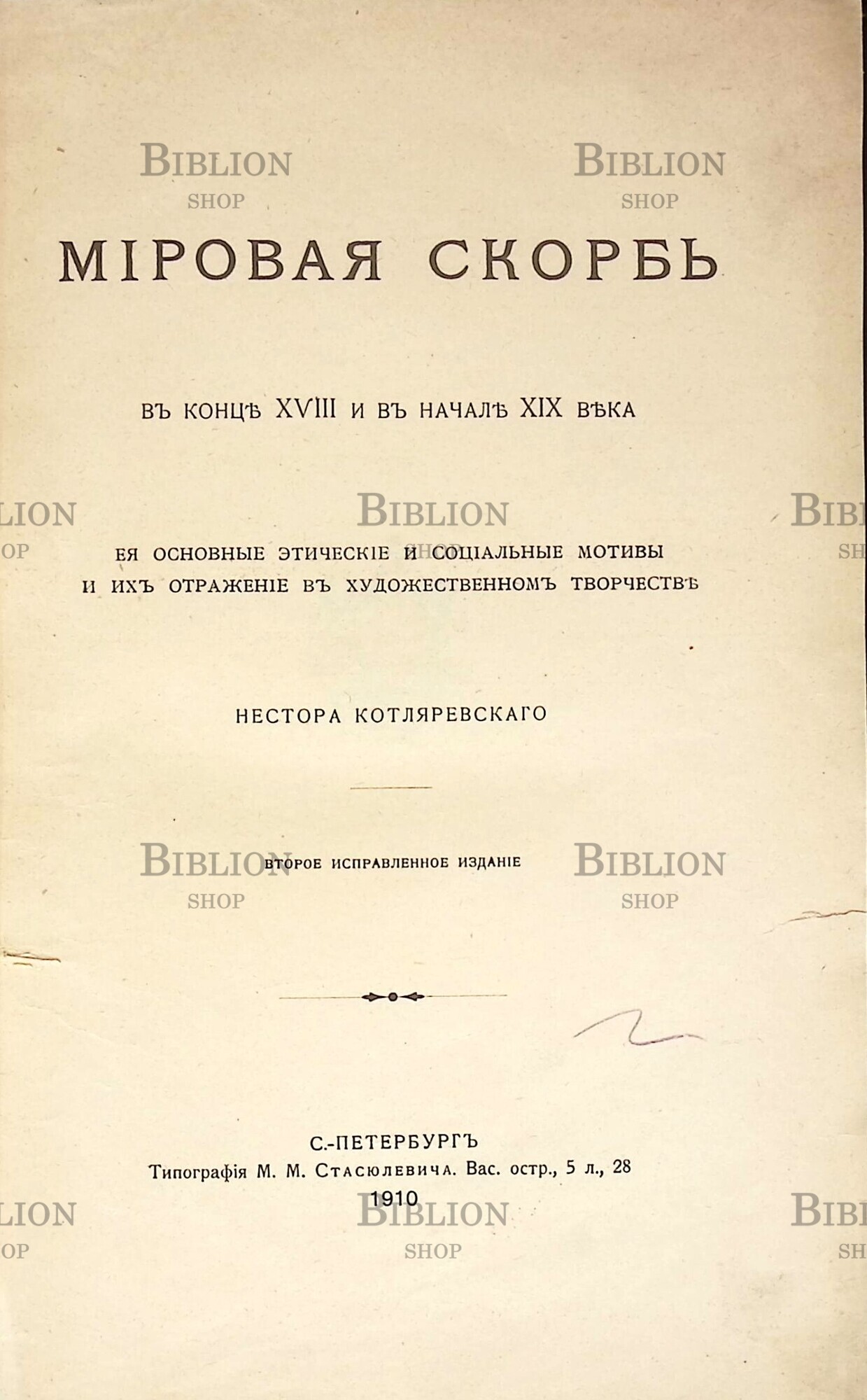 Главная Интернет-магазин Антикварные книги Мировая скорбь в конце XVIII и в начале XIX века. Её основные этические и социальные мотивы и их отражение в художественном творчестве Нестора Котляревскаго