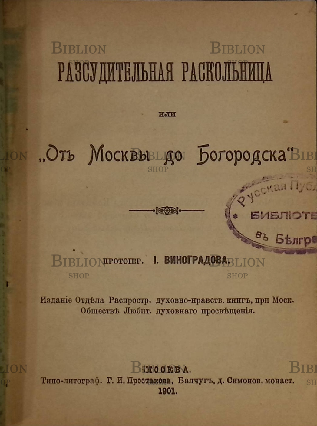 Главная Интернет-магазин Антикварные книги "Рассудительная раскольница, или "От Москвы до Богородска" Протоиерей И. Виноградов