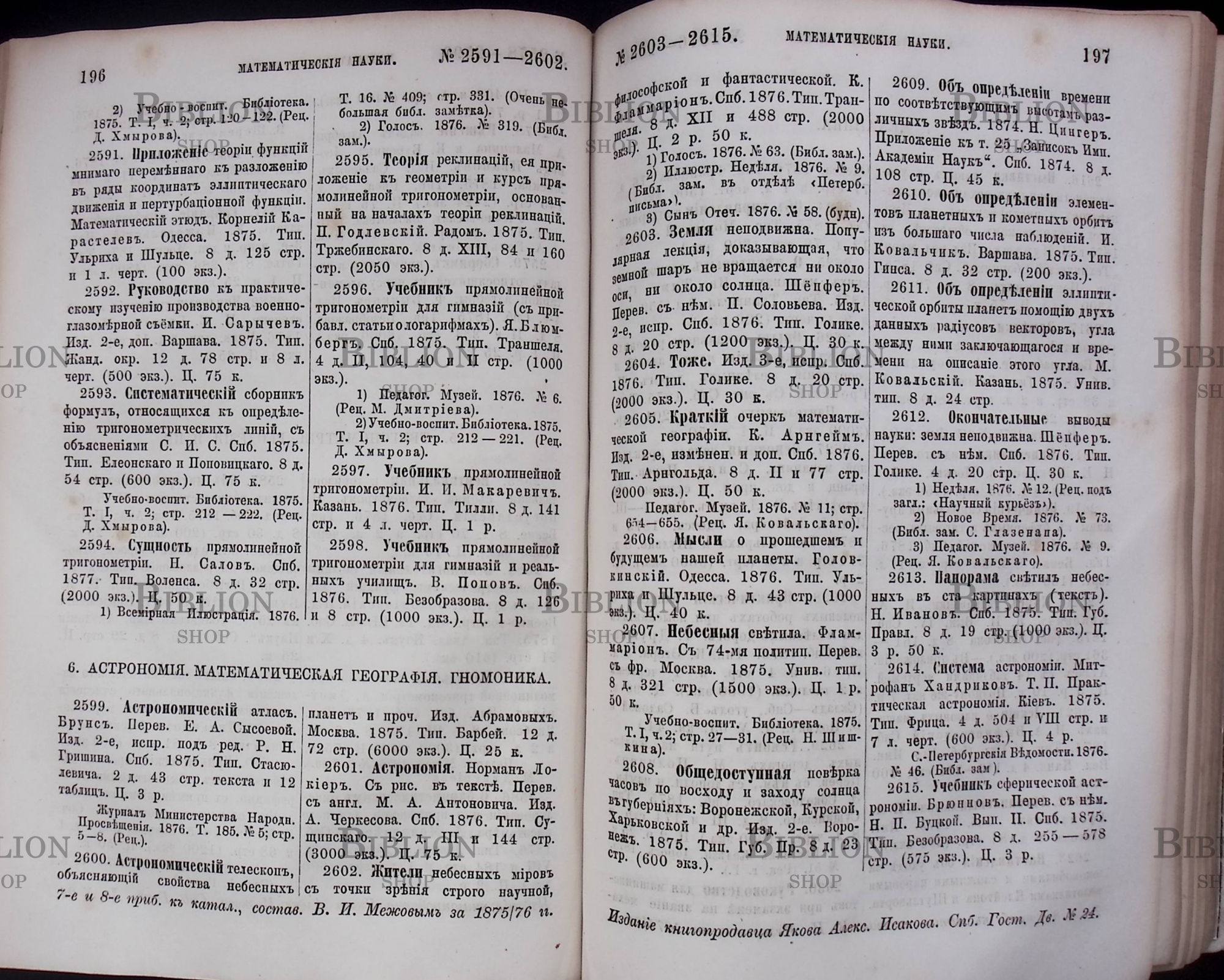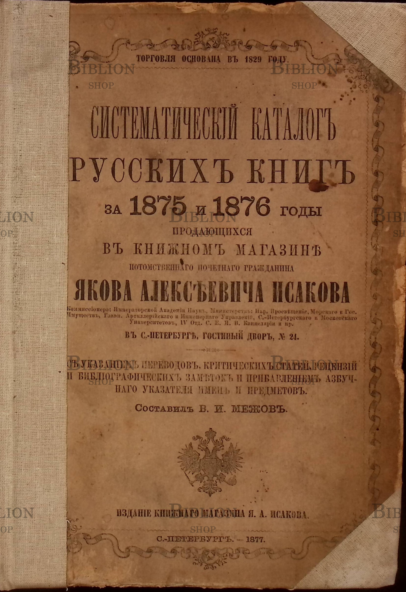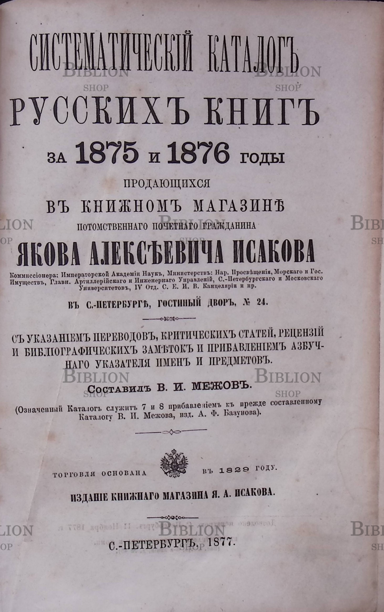 Главная Интернет-магазин Антикварные книги Систематический каталог русских книг за 1875 и 1876 годы (1877 г)