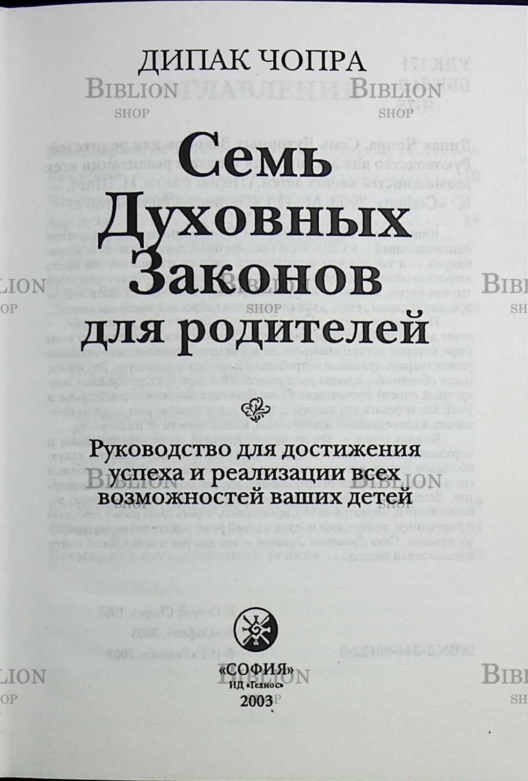 Главная Интернет-магазин Букинистическая литература Психология. Саморазвитие. Философия. Культура Чопра Дипак "Семь Духовных Законов для родителей "
