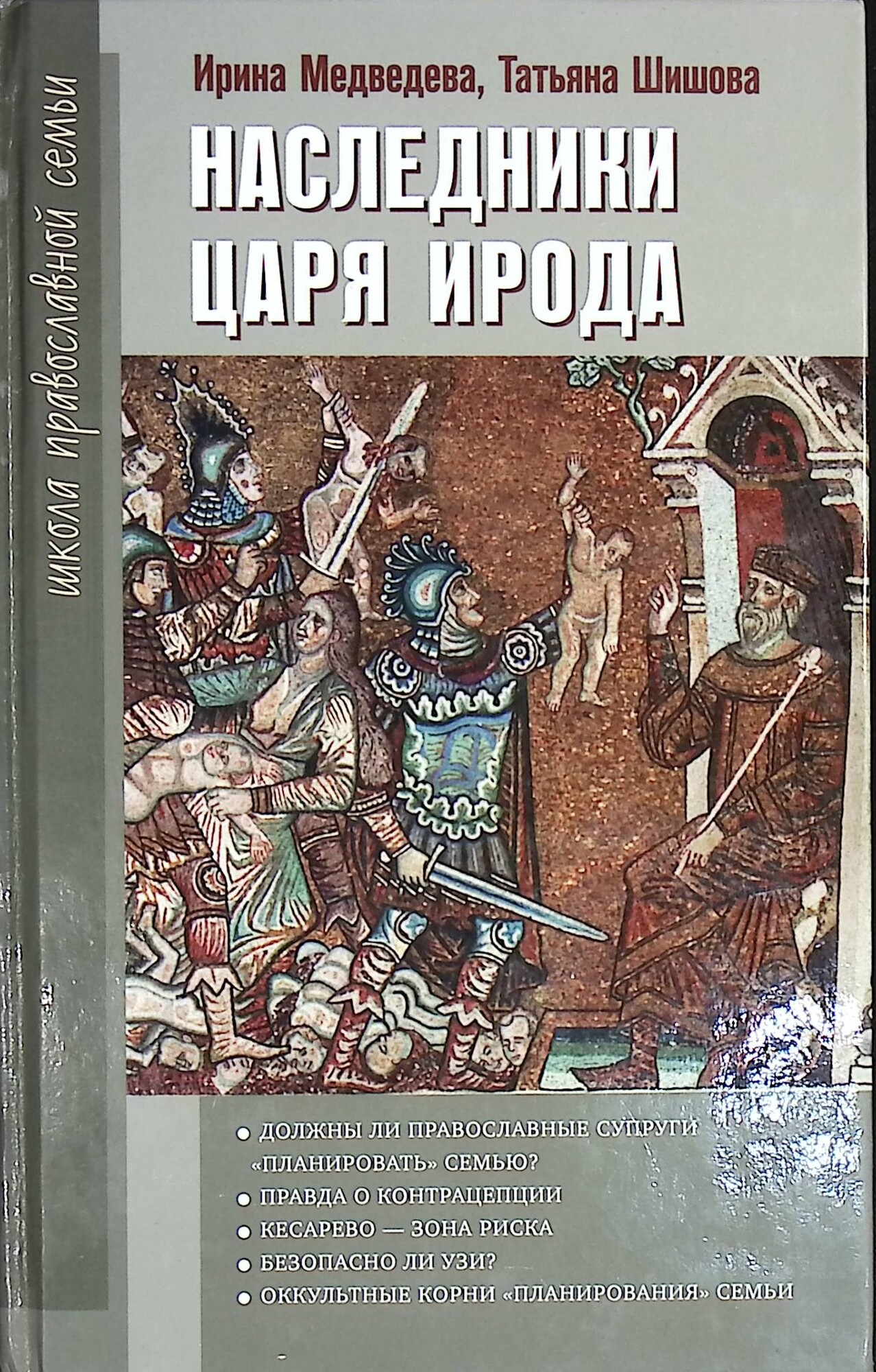 Православные психологи Ирина Яковлевна Медведева и Татьяна Львовна Шишова известны читателю как авторы популярных книг о детях, о проблемах современной семьи и современного образования, о процессах глобализации. «Книга для трудных родителей», «Разноцветные белые вороны», «Дети нашего времени», «Проклятие Хама», «Приказано не рожать», «Безобразия в образовании» и другие уже выдержали несколько переизданий и сделались настольными во многих российских семьях. Книга «Наследники царя Ирода», написанная живым, выразительным языком, знакомит читателя с историей, идеологией и практикой «Планирования семьи», с тем, как эта международная организация не только в России, но и по всему миру при помощи различных манипулятивных уловок целенаправленно сокращает рождаемость, выдавая свою богоборческую, античеловеческую деятельность за благородный труд по «охране репродуктивного здоровья». Эту книгу будет интересно, а главное - чрезвычайно полезно, прочитать всем, кому не безразлично будущее своей семьи и своего Отечества.