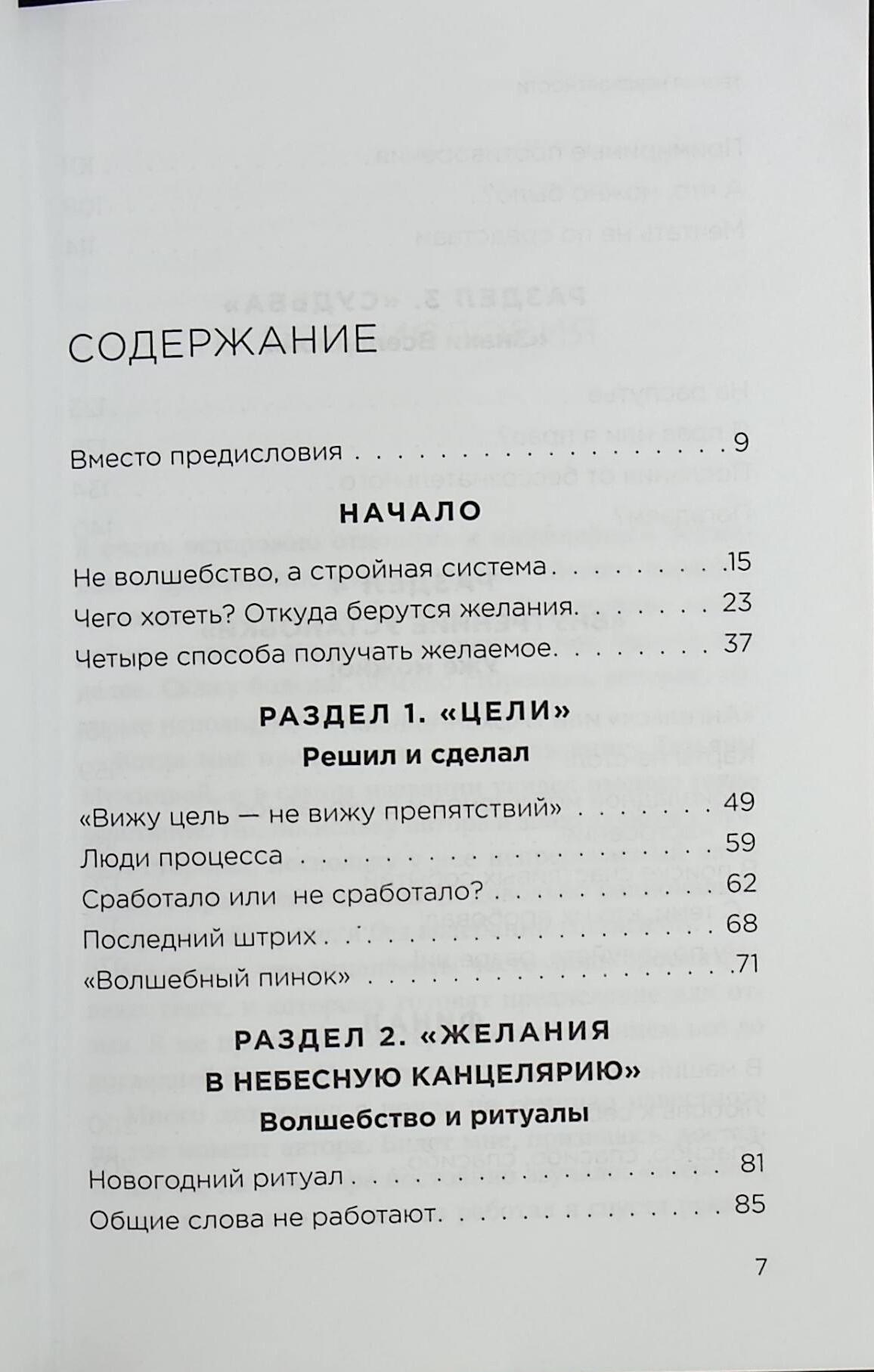 Никакой магии. Только здравый смысл, психология и чуть-чуть веры в чудеса. Книга Татьяны Мужицкой – известного психолога, тренера и телеведущей – раскрывает механизмы исполнения желаний. Она предлагает до изящного простую технологию превращения «хочу» в «имею». Без аффирмаций, визуализаций и танцев с бубном. Зато почти со стопроцентной гарантией, что задуманное сбудется. Главное – быть последовательным и оперативно реагировать на счастливые возможности, которые подкидывает судьба.