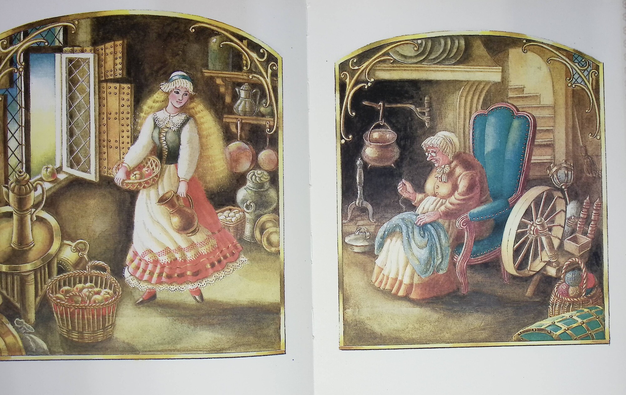 Полностраничные цветные иллюстрации,крупный шрифт.