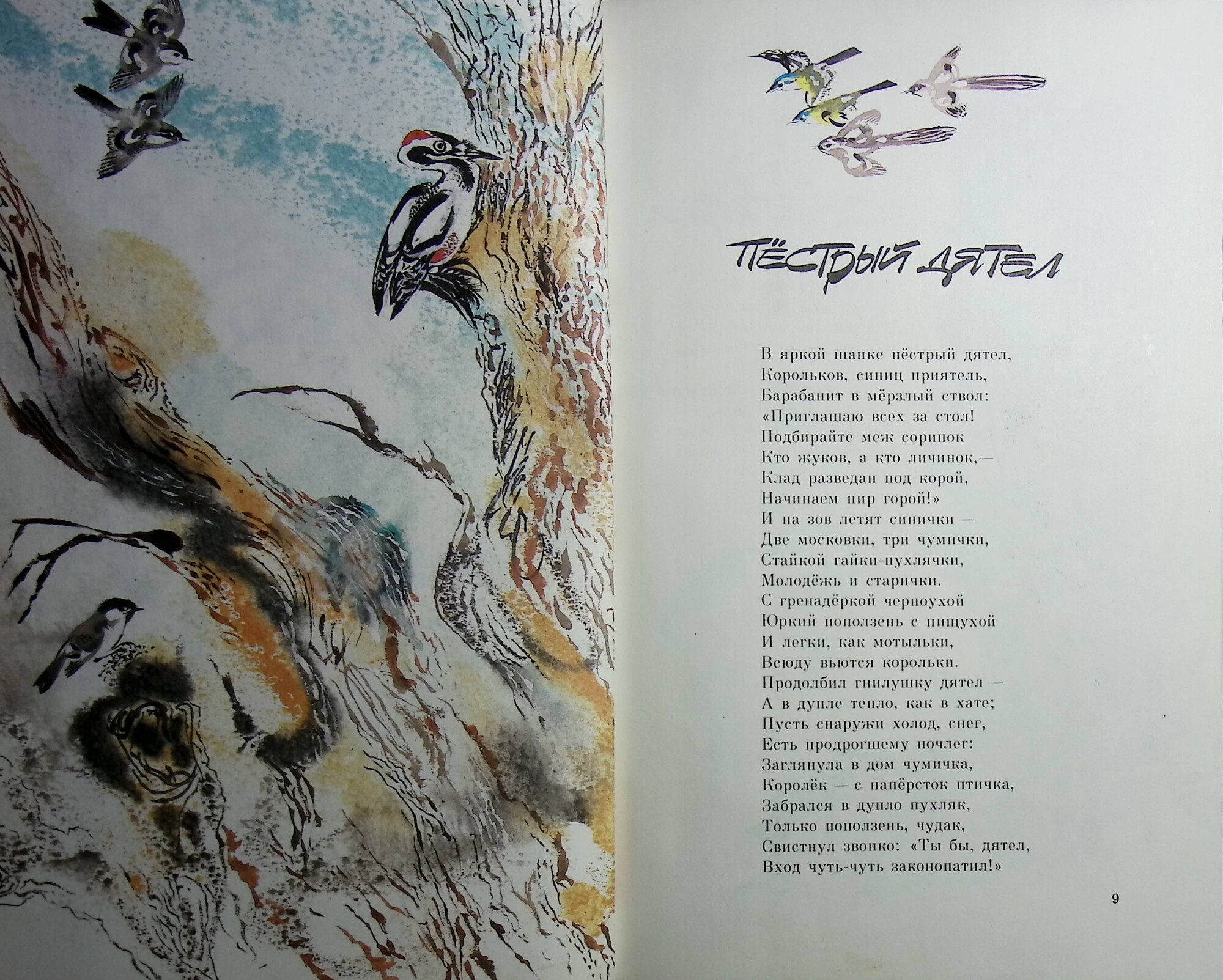 Своеобразная поэтическая энциклопедия птиц.Книга красочно оформлена художником Н. Чарушиным.