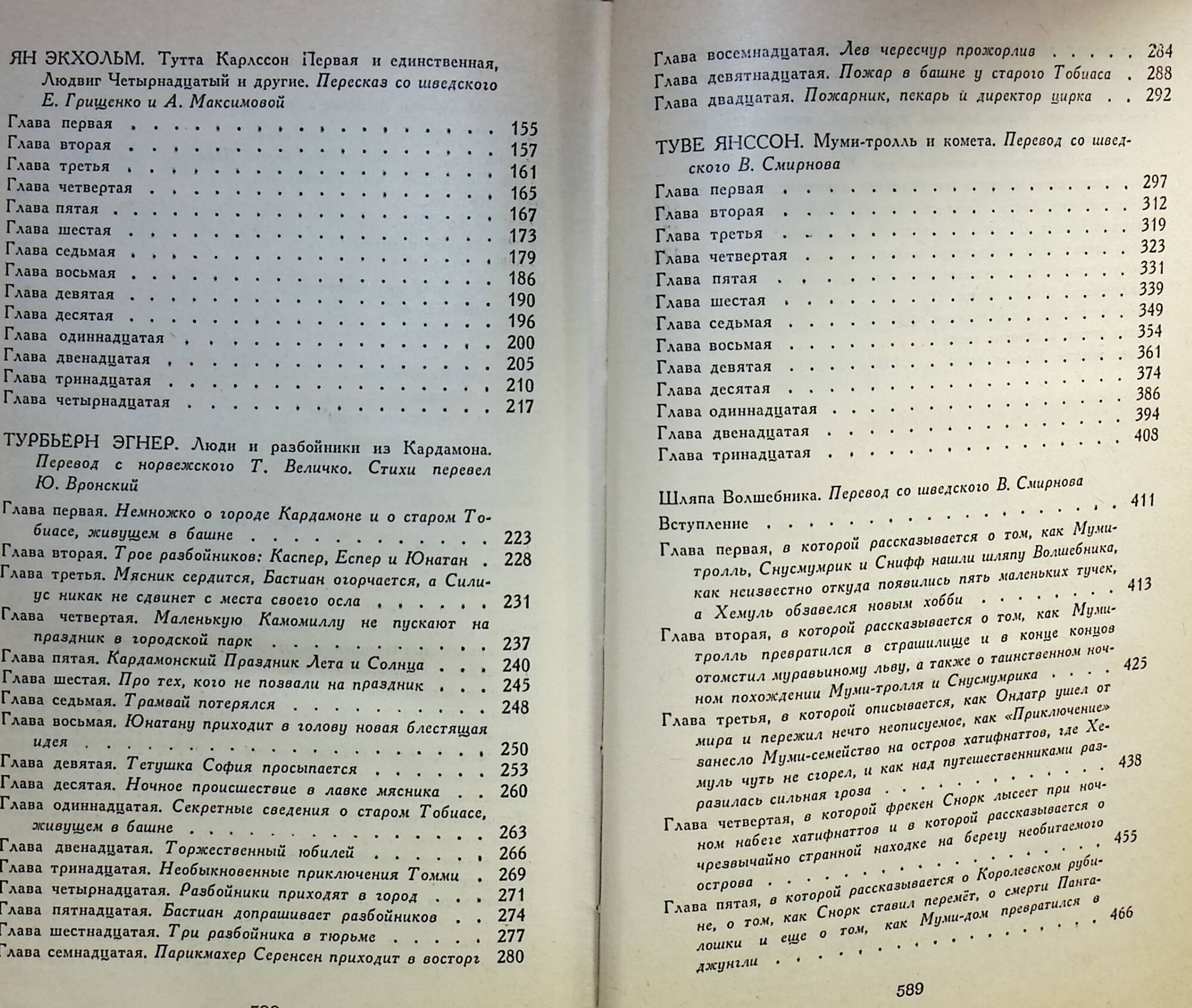 В издание включены сказочные повести Синкен Хопп "Волшебный мелок", про удивительные приключения двух друзей Юна и Софуса; Яна Экхольма "Тутта Карлсон Первая..." о лисенке Людвиге Четырнадцатом; веселая история о жителях города Кардамона и трёх незадачливых разбойниках, написанная Турбьерном Эгнером и три повести финской писательницы и художницы Туве Янсон: "Муми-тролль и комета", "Шляпа волшебника" и "Волшебная зима".