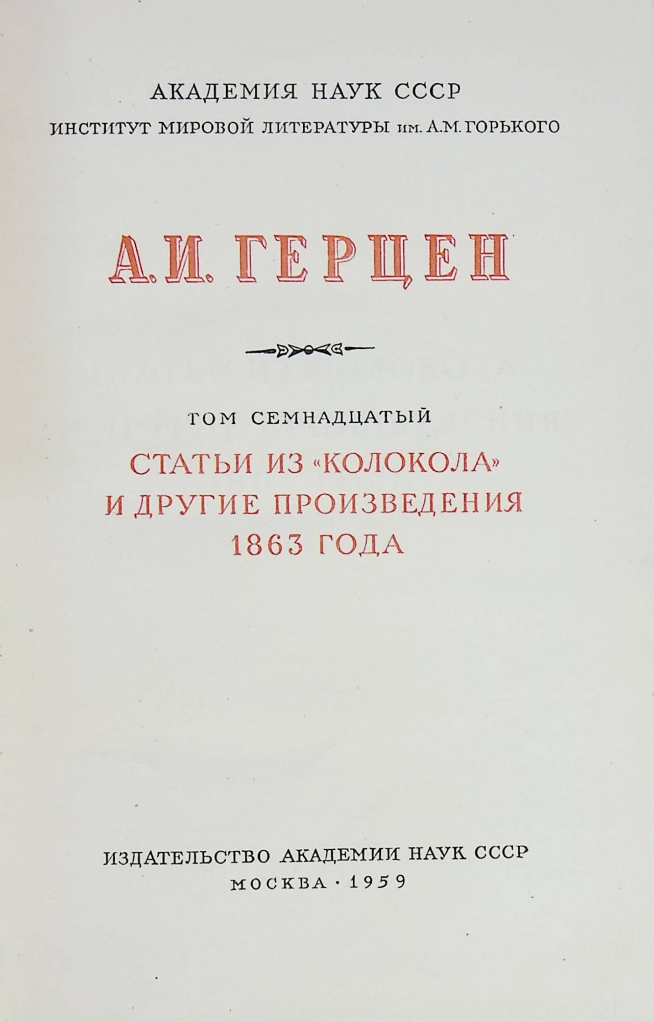 Герцен А.И. Собрание сочинений в 30 томах. Том 17 "Статьи из "Колокола" и другие произведения 1863 года" 1959 г