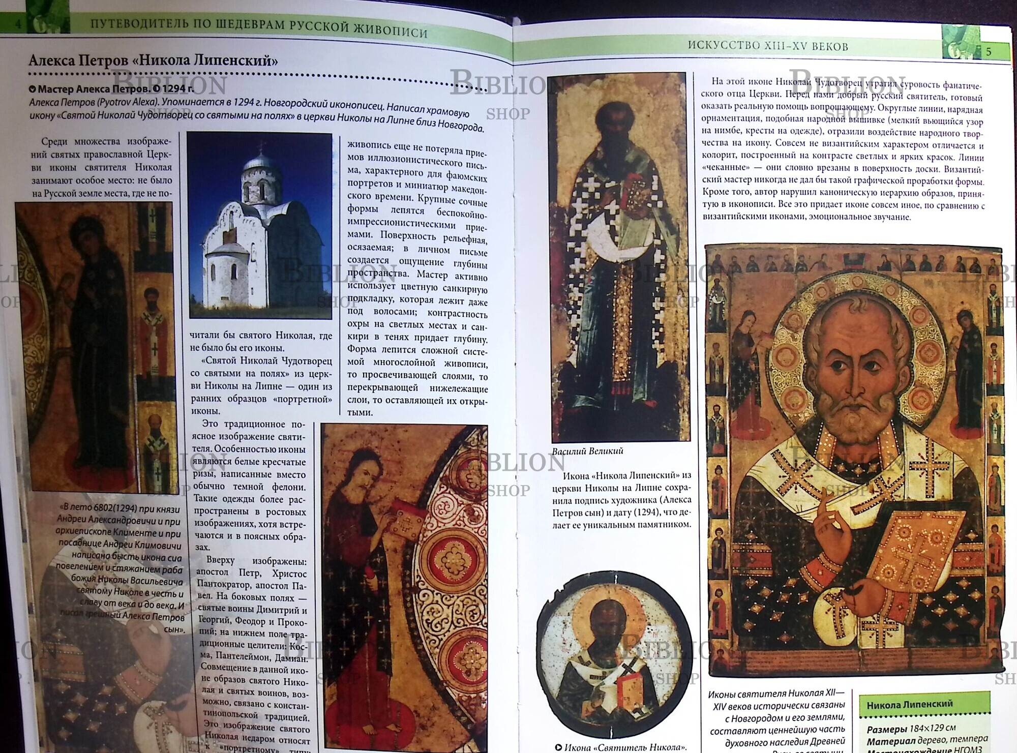 В "Путеводителе по шедеврам русской живописи" представлены репродукции и краткое описание шедевров русского искусства, начиная с икон XII века и заканчивая произведениями абстрактной, нон-конформистской и экспериментальной живописи, созданными нашими современниками.