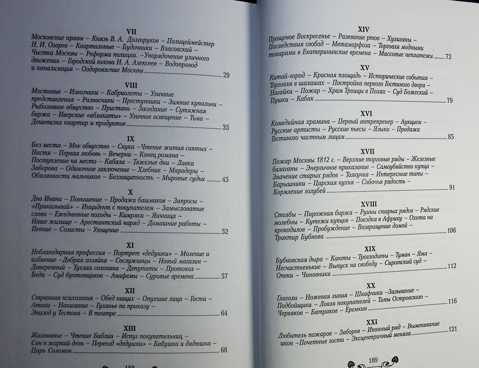 Впервые вышла в свет в 1914 году и с тех пор не переиздавалась. Автор подробно описывает быт, нравы, обычаи, обряды жителей Москвы позапрошлого столетия, своеобразие особого слоя горожан — торгового люда.