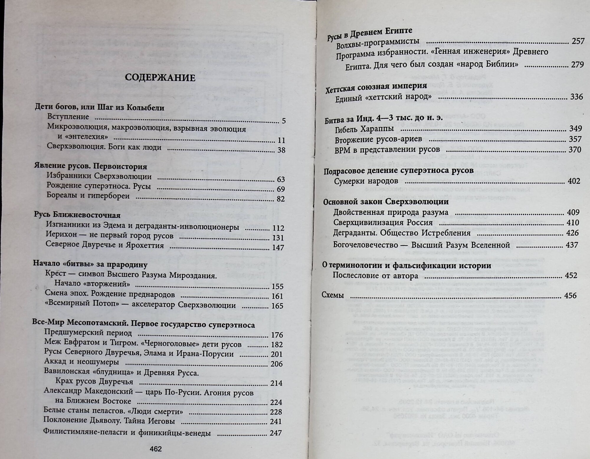 Новейшие исследования показывают, что человек был создан сверхэволюционным путем, что не отменяет дарвиновскую теорию на линейных этапах Сверхэволюции. Путем направленной мутации из биомассы был создан первый этнос планеты, первонарод, обладающий первоязыком, - суперэтнос русов. Позже из него выделились все этносы Земли. Жизнь на Земле развивается по основным законам Сверхэволюции. Цель человечества, суперэтноса русов, "детей богов", - "взросление" и переход в стадию богочеловечества, становление "богами".