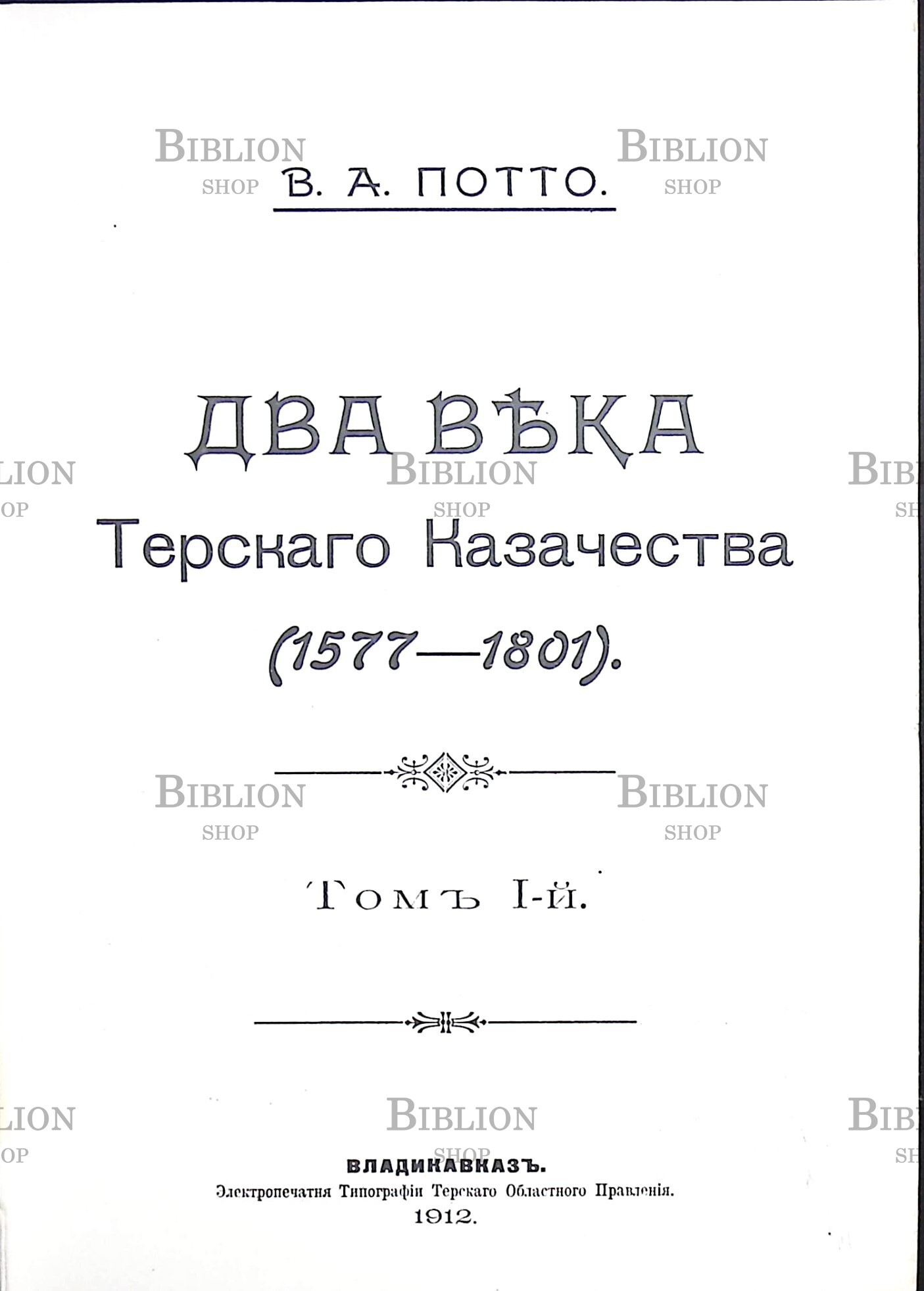 Главная Интернет-магазин Букинистическая литература История Потто В.А. Два века Терского Казачества 1577-1801(Репринт)