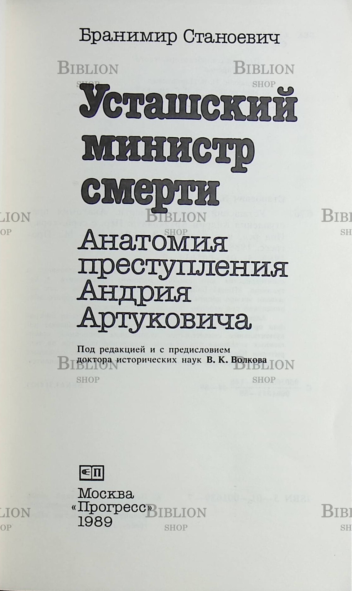 Главная Интернет-магазин Букинистическая литература История Военное дело,военная история "Усташский министр смерти. Анатомия преступления Андрия Артуковича" Бранимир Станоевич