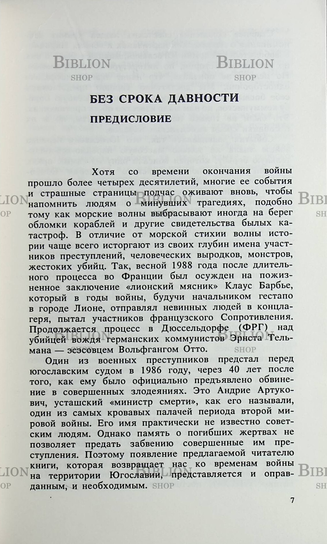 Книга Б. Станоевича - документальное повествование о "деятельности" югославского военного преступника А. Артуковича. "Палач Балкан", "хорватский Гиммлер" - так называли четыре десятилетия спустя Артуковича, которого американский суд передал югославскому правосудию.