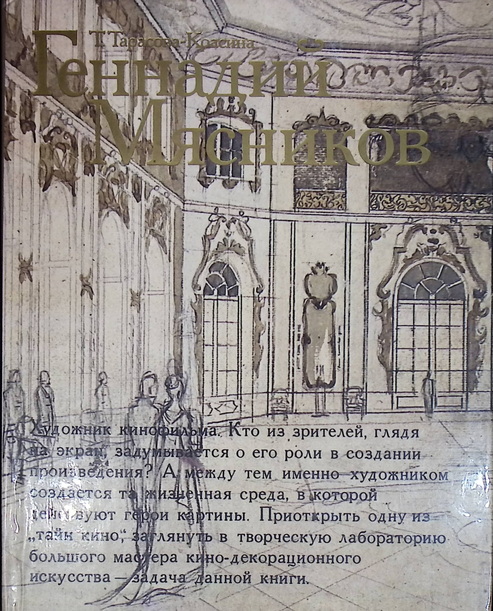Монография Т. Тарасовой-Красиной "Геннадий Мясников" посвящена творчеству видного художника кино. Созданные при его участии фильмы "Мичурин", "Первый эшелон", "Коммунист", "Хождение за три моря" отличаются своеобразным и ярким выразительным решением.Высоких профессиональных качеств потребовала от художника работа над фильмом "Война и мир",выдвинувшая его в число лучших мастеров среди художников-постановщиков. Монография раскрывает специфику работы художника кино,рисует живой образ одного из интереснейших представителей этой профессии. Издание рассчитано на широкий круг читателей.