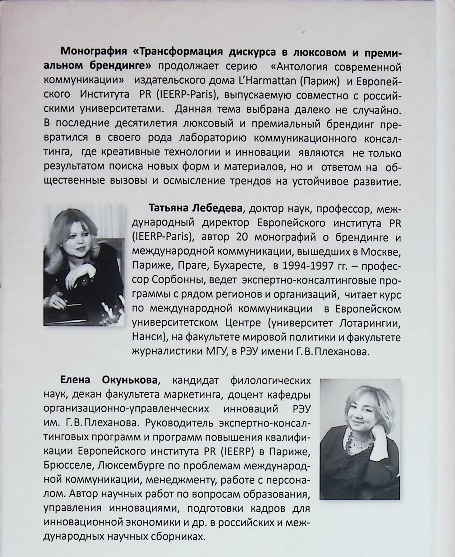 "Трансформация дискурса в люксовом и премиальном брендинге" Лебедева Т. Ю., Окунькова Е. А.