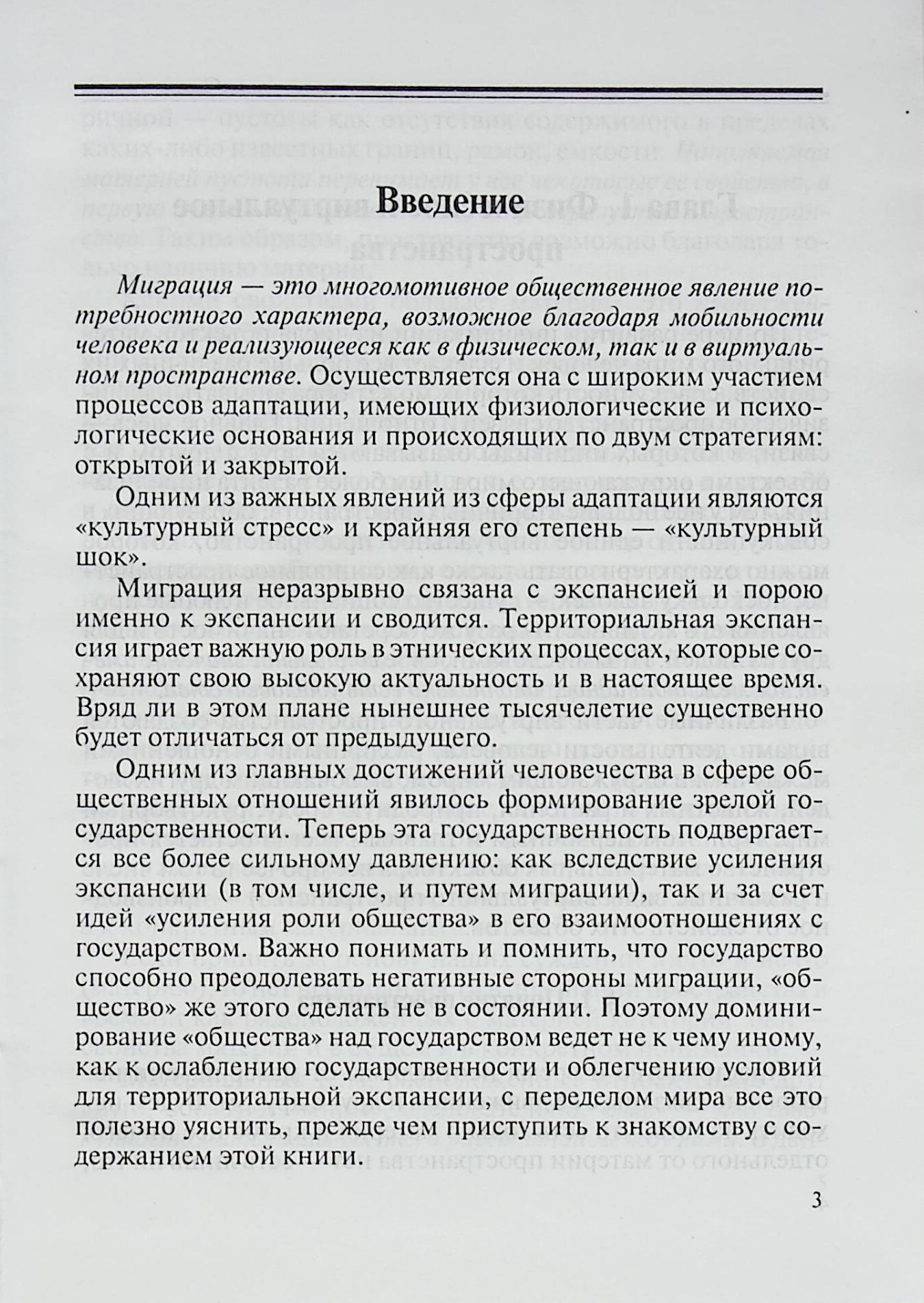 Изучение свойств и особенностей миграции как общественного явления сейчас приобретает особую актуальность в связи с образованием ряда новых государств с определенными границами, а миграция изначально отрицает эти границы, что существенно сказывается на судьбах людей.