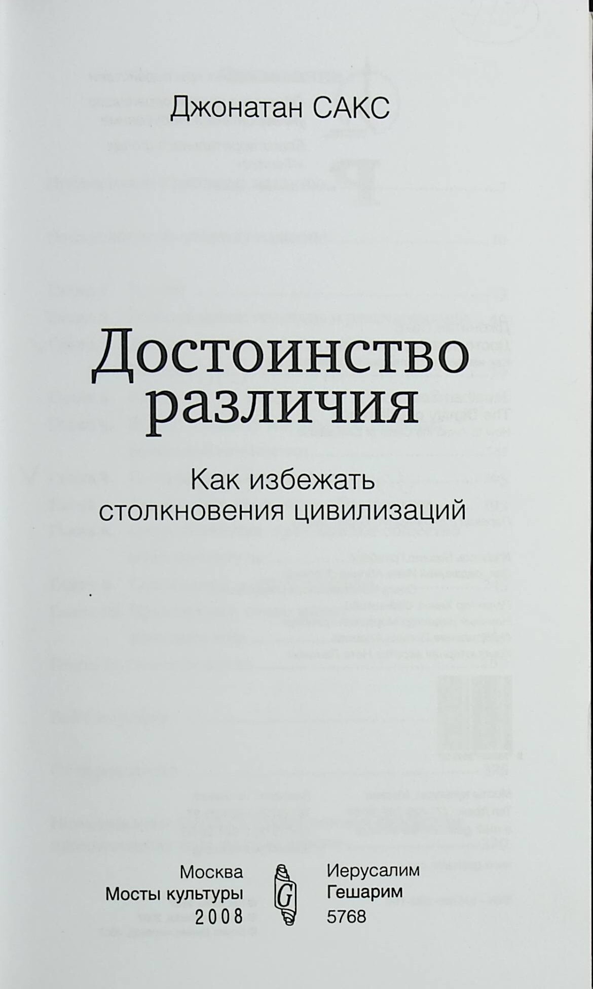 "Достоинство различия. Как избежать столкновения цивилизаций " Джонатан Сакс