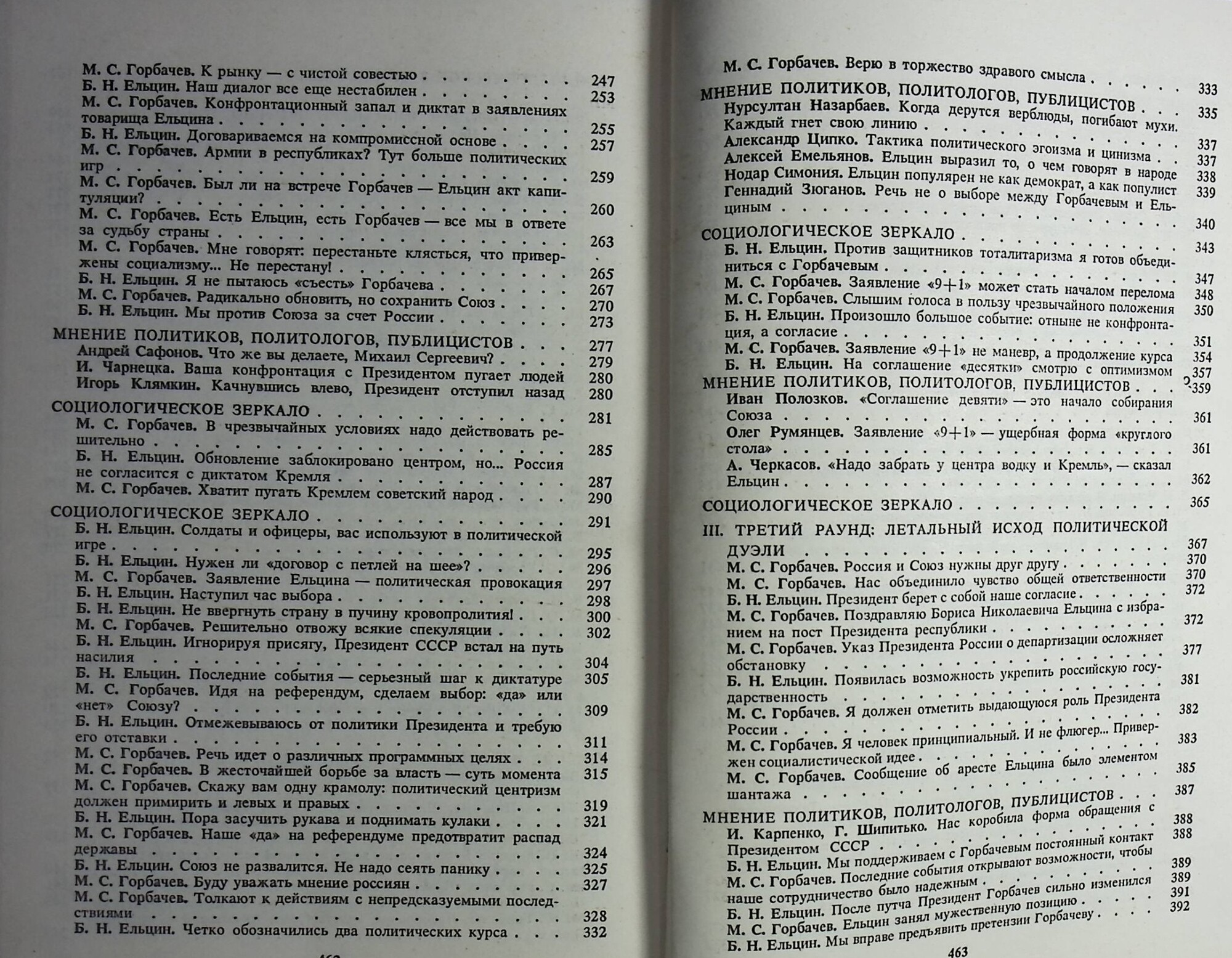 Эта книга о драматическом для судьбы страны соперничестве двух политических лидеров на этапе, вошедшем в отечественную историю под названием перестройки. Она документальна. Обо всех перипетиях изнурительного противостояния Горбачев — Ельцин читатели узнают непосредственно из уст «главных персонажей». Фрагменты речей, выступлений, интервью, заявления и другие материалы, поданные в хронологической последовательности, рисуют достаточно полную картину политического марафона длиною в полторы тысячи дней: с октября 1987-го по декабрь 1991 г. Привлечен и аналитический материал, комментирующий ход борьбы, отражающий разные взгляды и позиции — оценки политиков и политологов, публицистов, в том числе и зарубежных, данные социологических опросов. Книга рассчитана на массового читателя, на всех, кто интересуется политической историей страны и стремится разобраться в сложных общественно-политических процессах сегодняшнего дня.