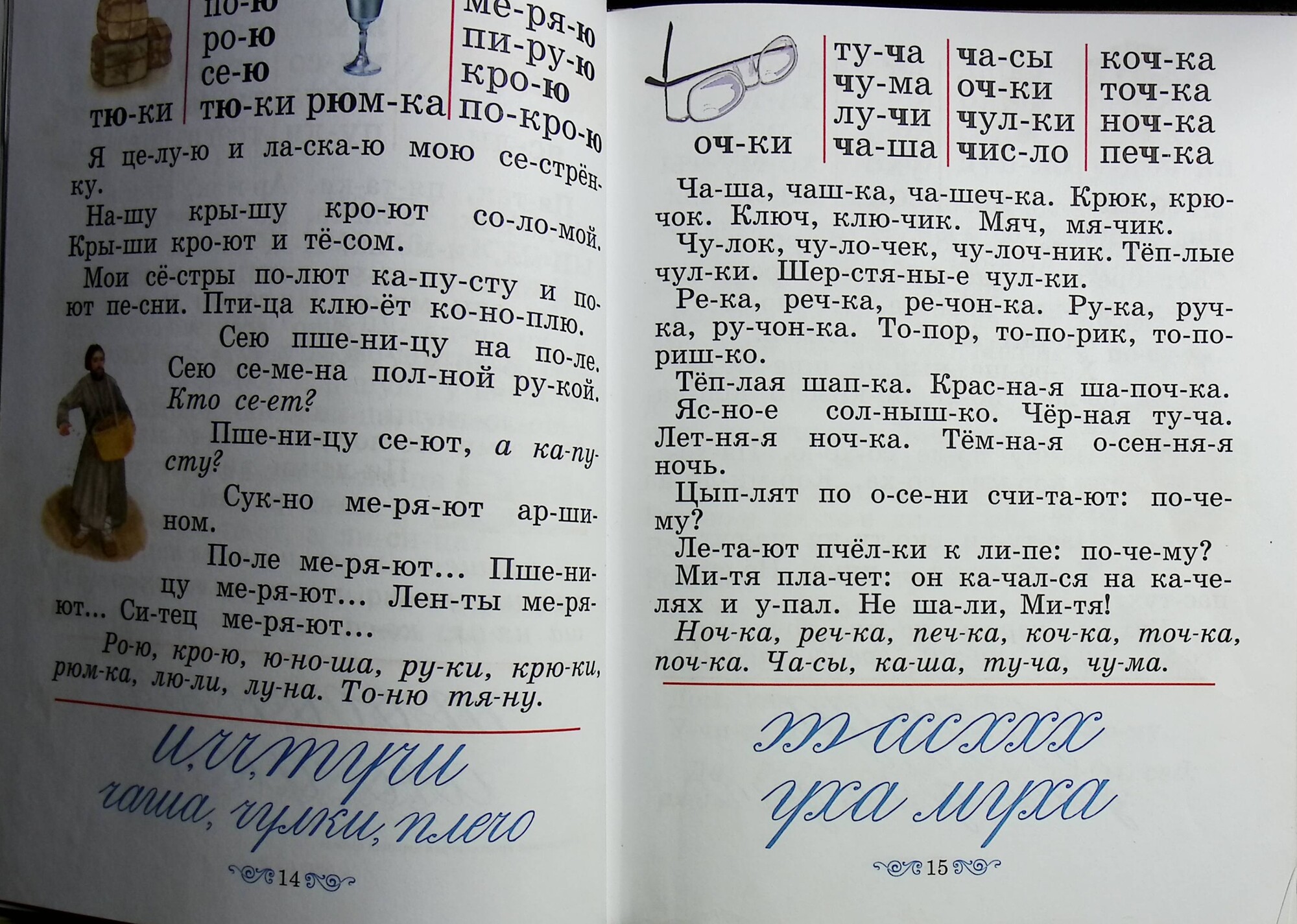 "Букварь для совместного обучения письму, русскому и церковнославянскому чтению и счету для народных школ" Тихомиров Д., Тихомирова Е.