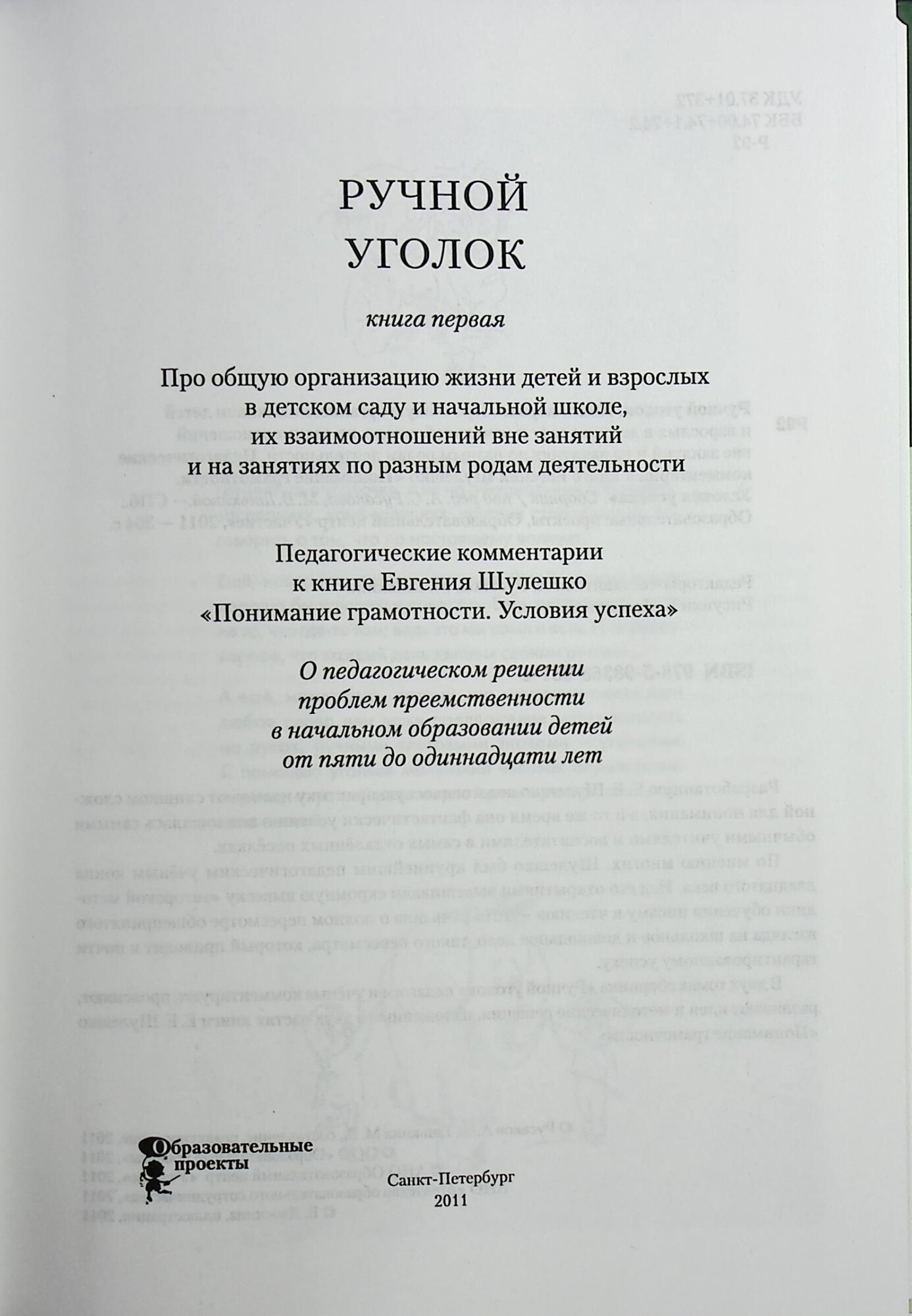 Ручной уголок. Педагогические комментарии к книге Евгения Шулешко Понимание грамотности. Условия успеха . Книга 1. Про общую организацию жизни детей и взрослых в детском саду и начальной школе