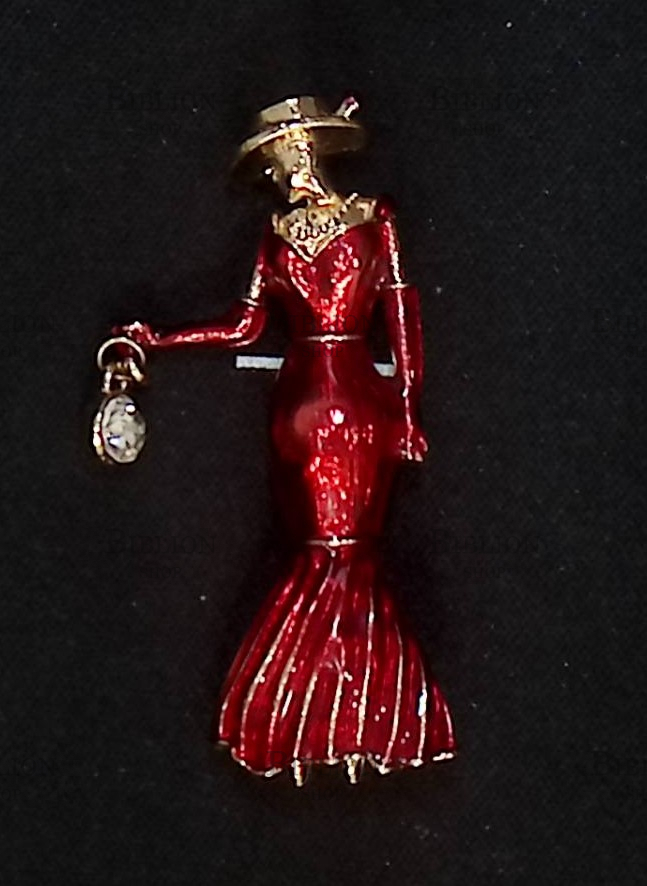 Брошь "Дама в красном платье" (Винтаж)