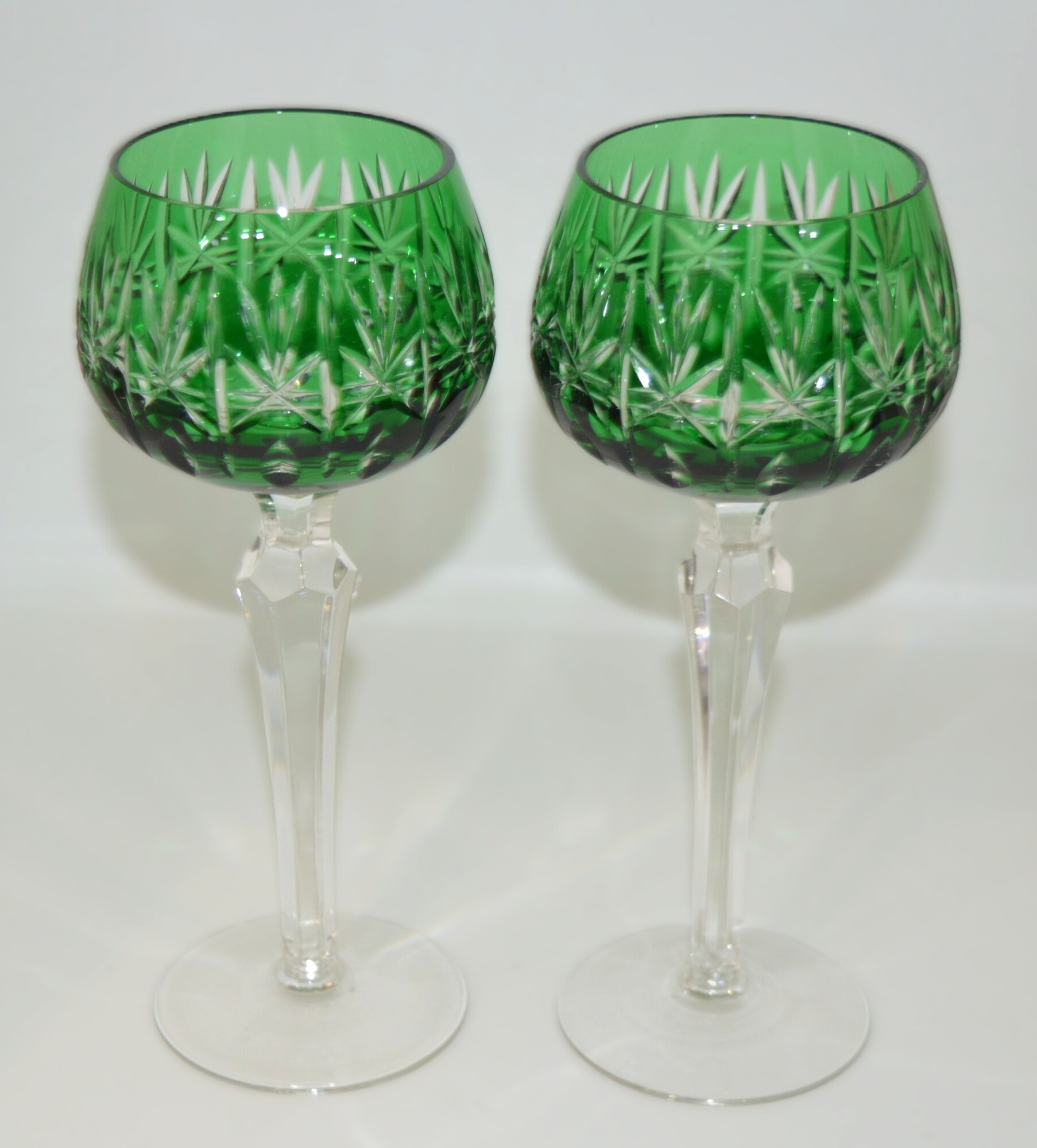 Красивые бокалы зеленого цвета (объем 200 мл) на фигурной ножке. Накладной цветной хрусталь,ручная алмазная грань.
