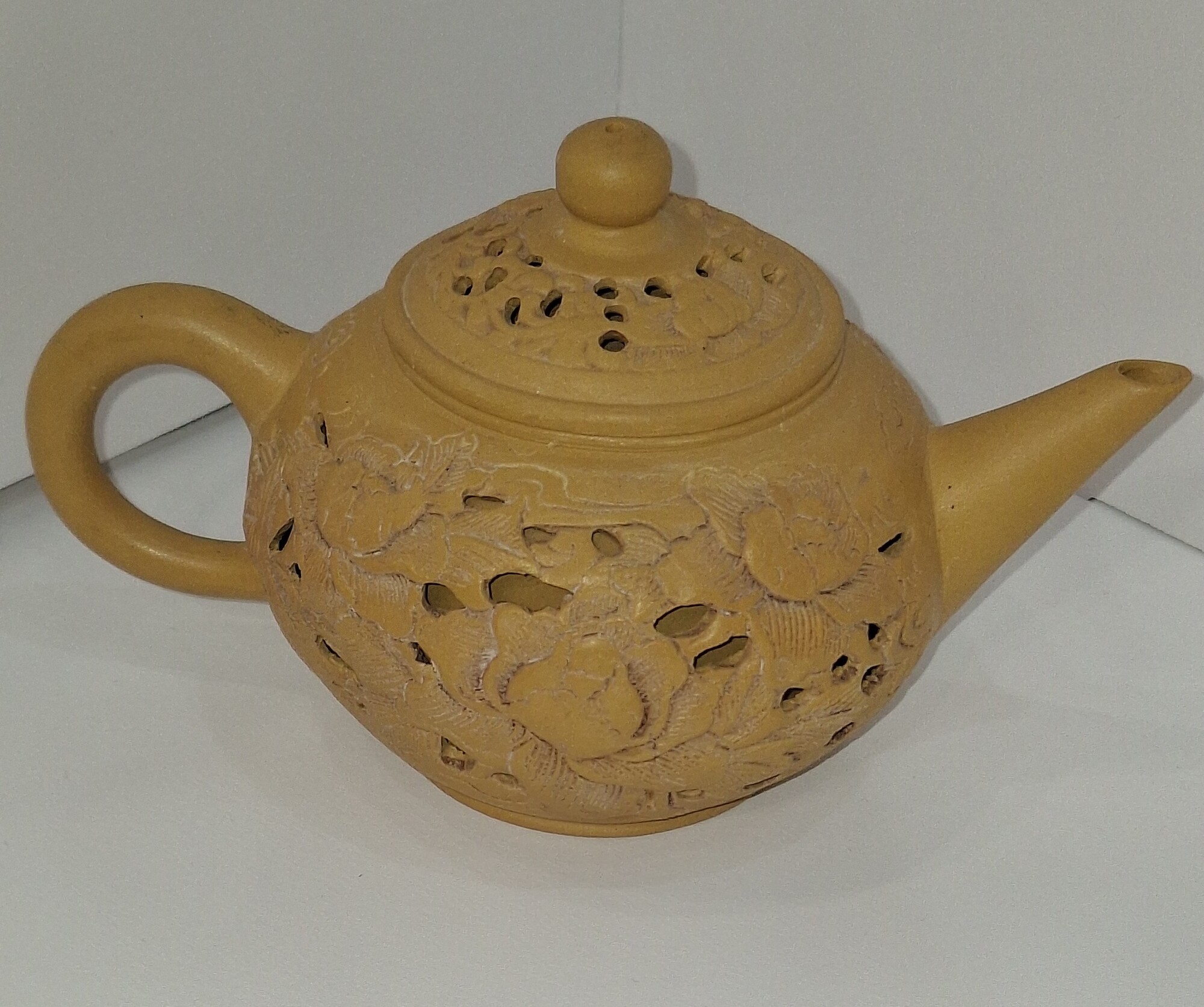 Заварочный авторский чайник из глины (Китай ,ручная резьба,клеймо мастера)