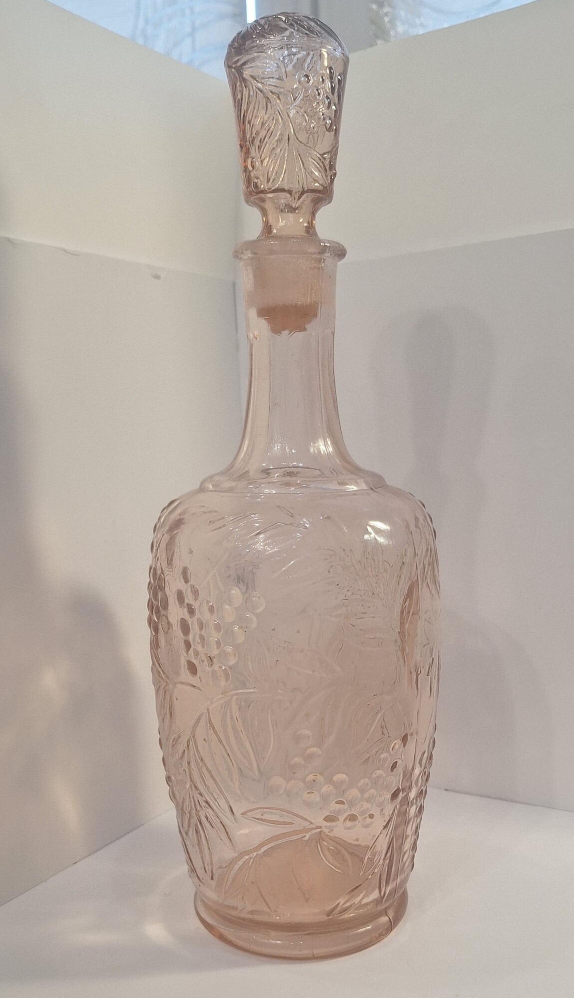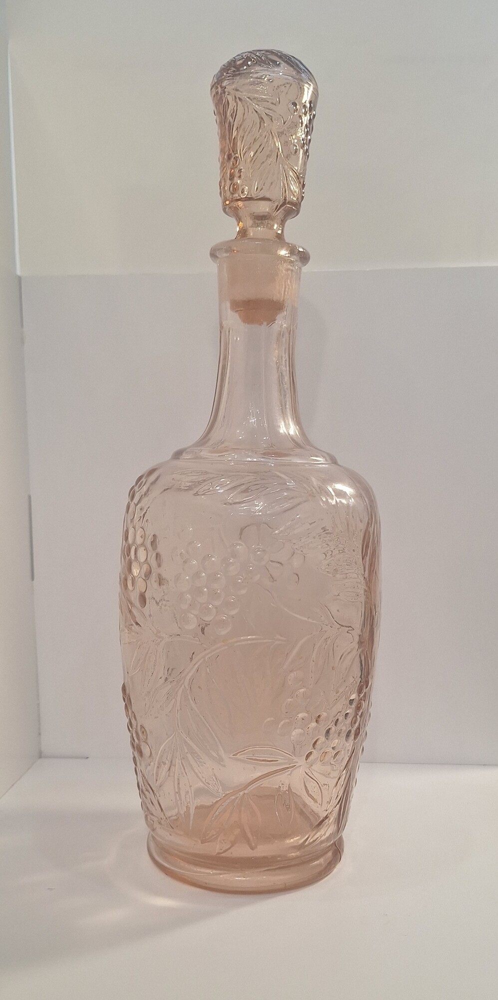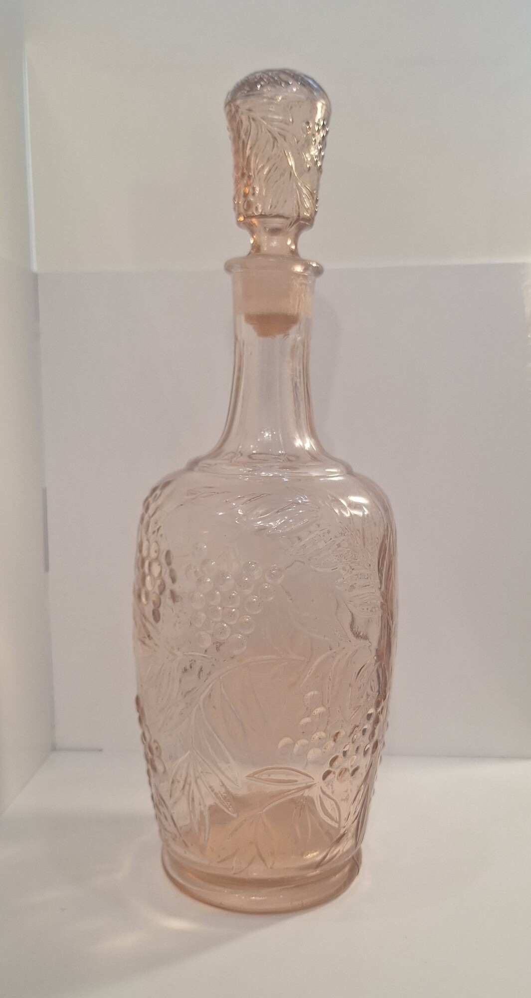 Графин "Рябина" с пробкой из карамельно-розолинового стекла с красивым рельефным рисунком.Без дефектов.