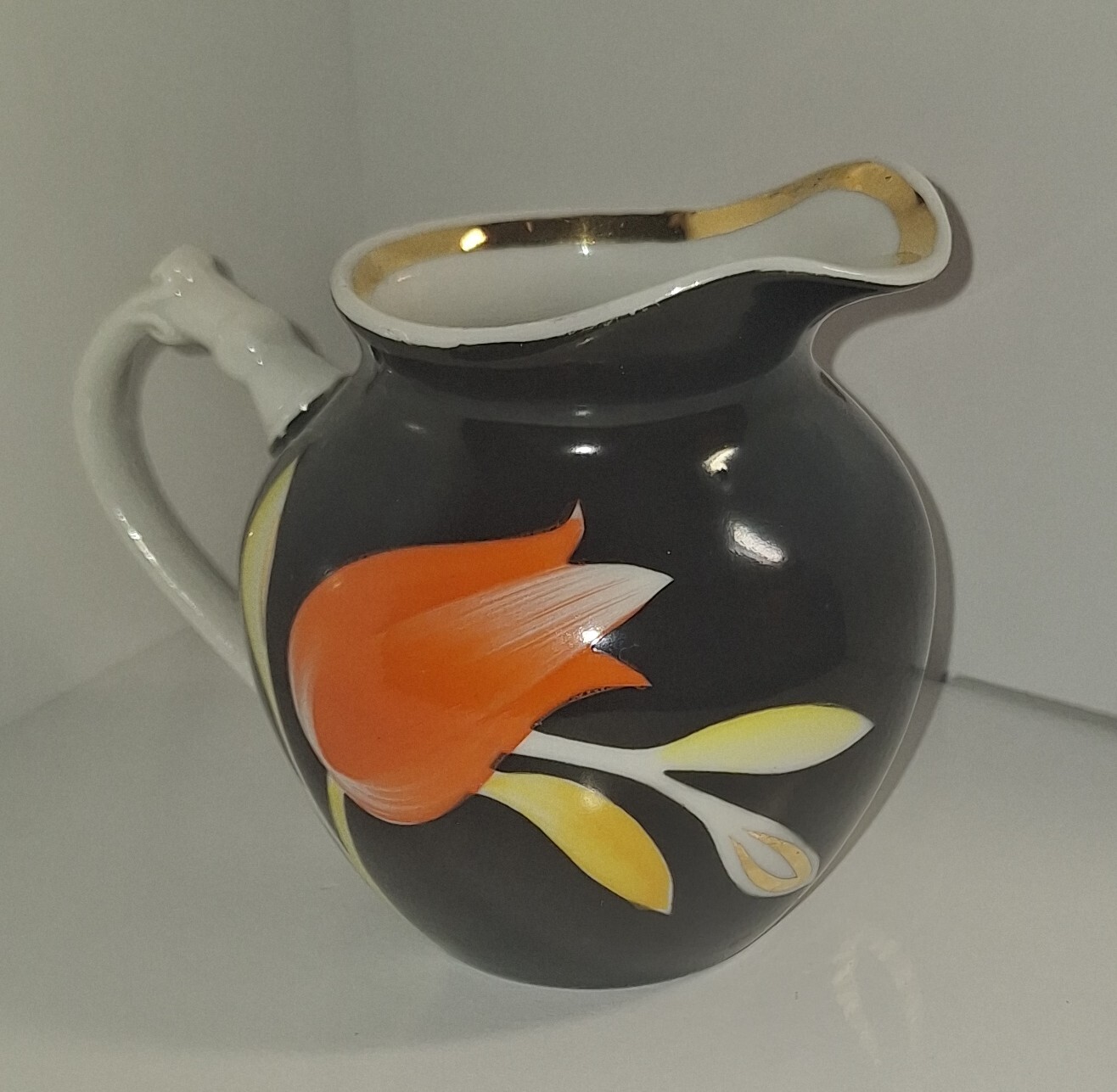 Молочник винтажный из сервиза Тюльпан, фарфор, крытье, роспись, золочение, Дулевский фарфоровый завод Дулёво, СССР, 1968-1991 гг.
