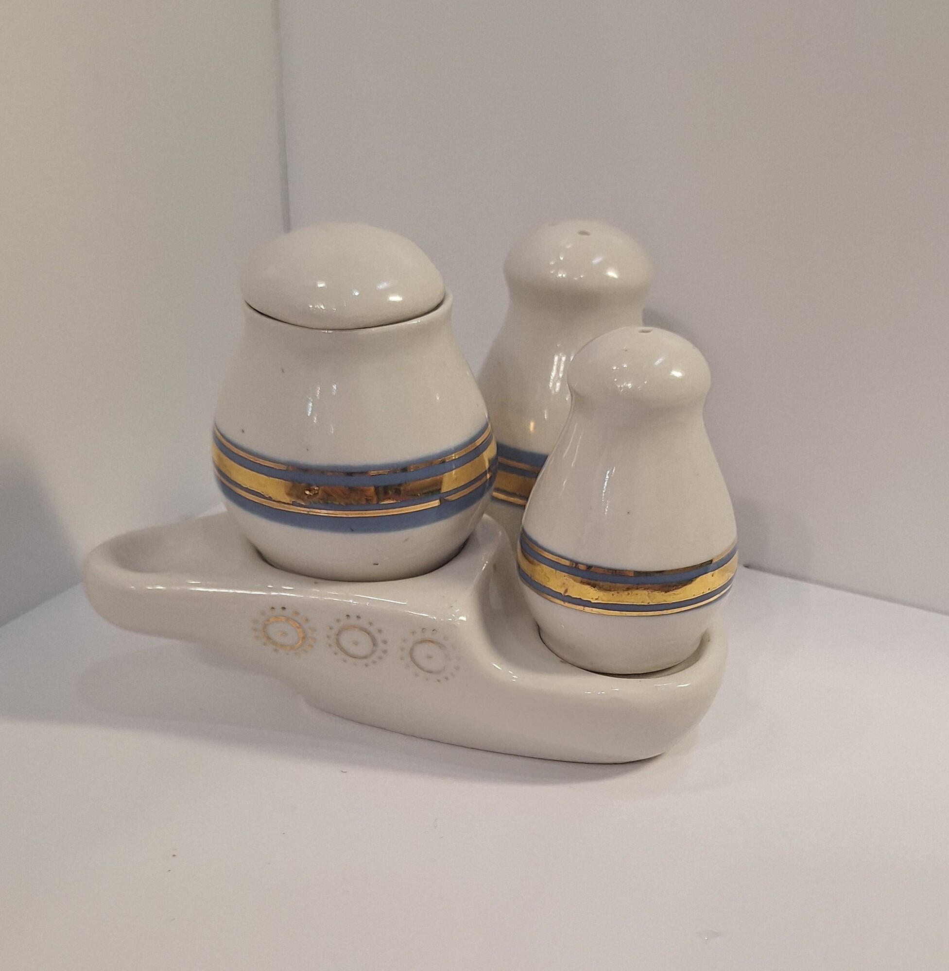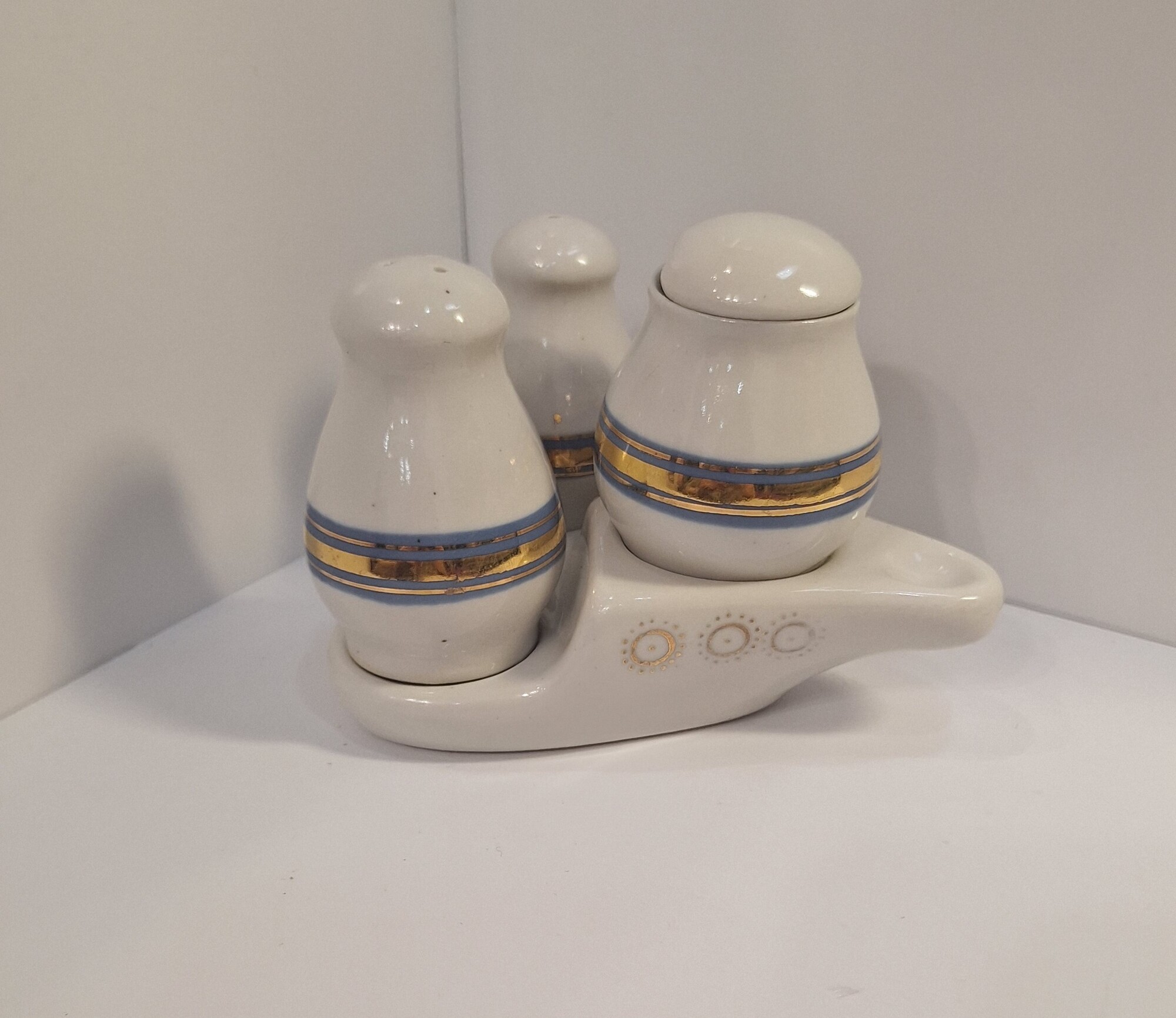 Набор для специй на подставке "КОРАБЛЬ" ( СССР,фарфор, Полонне 60-70 гг)