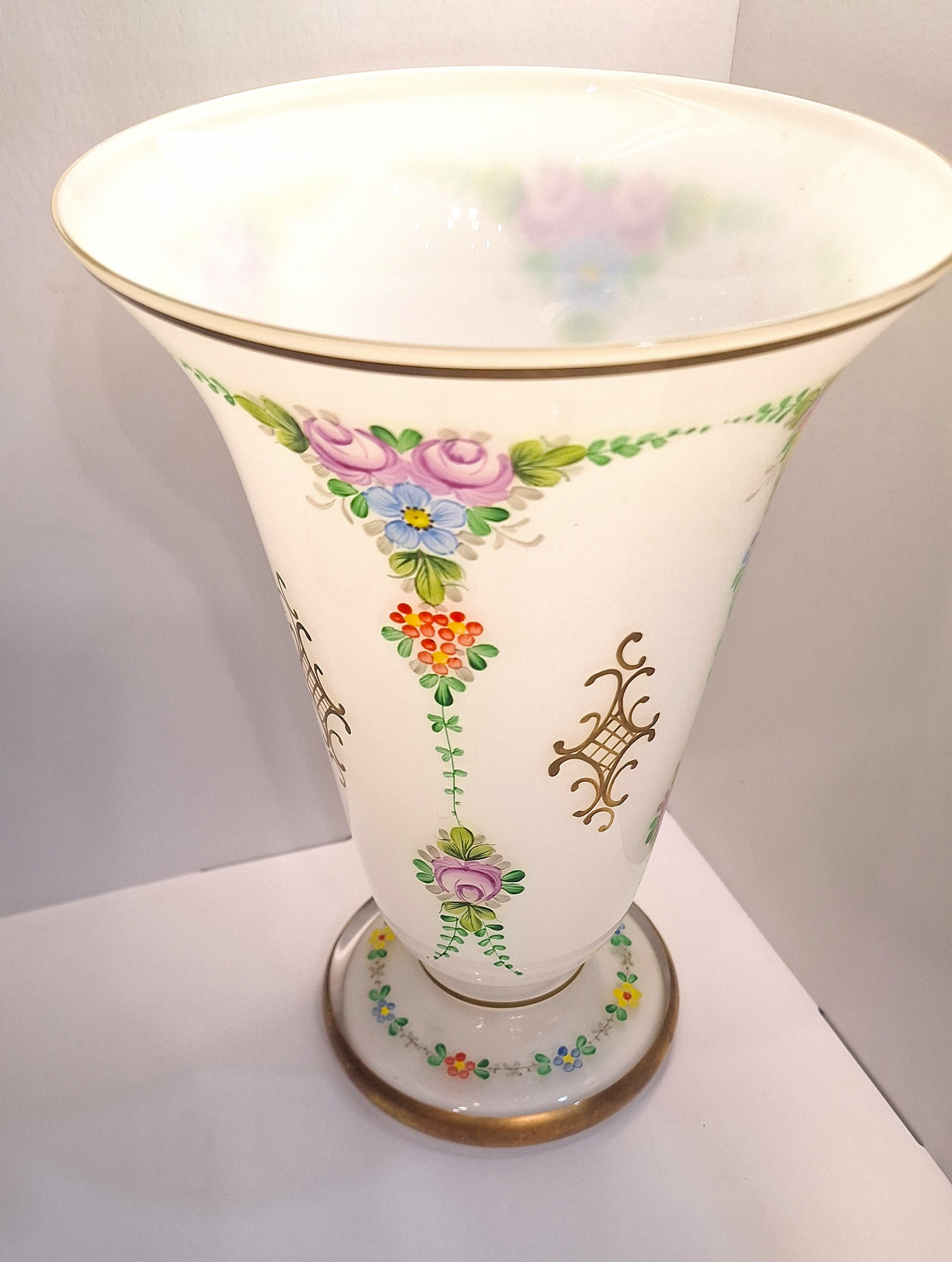 Ваза "Цветочный орнамент" Чехия,период СССР (Белое Молочное стекло, роспись)