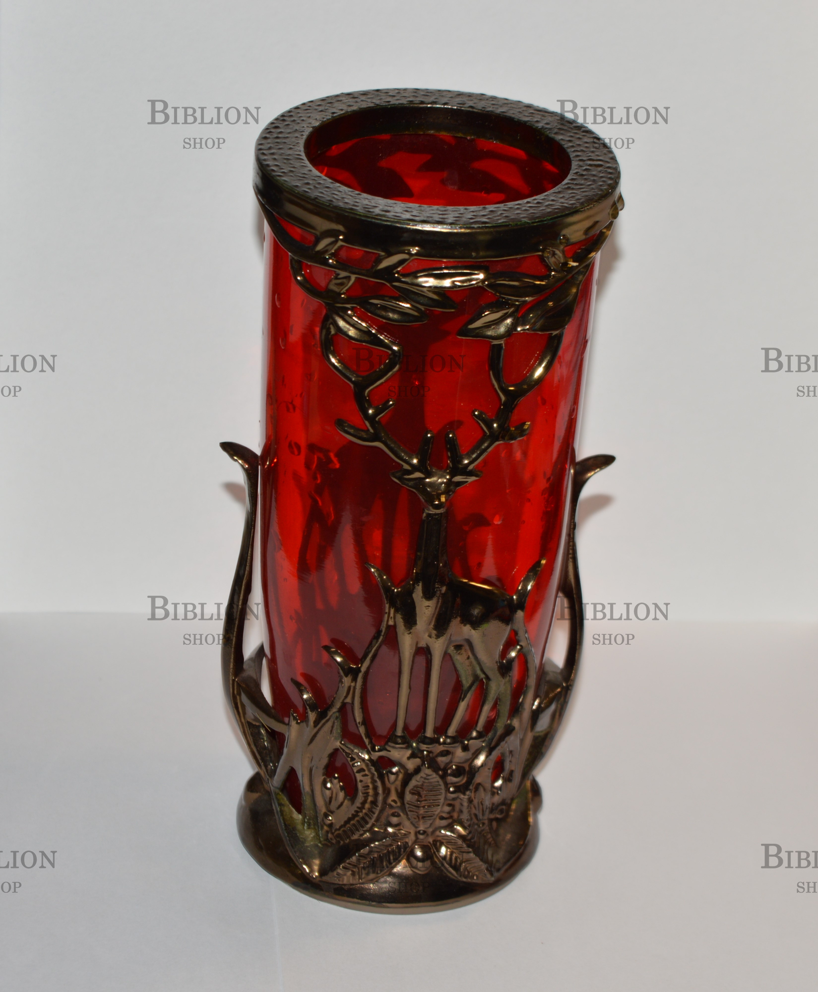 Главная Интернет-магазин Винтаж,старинные вещи, предметы интерьера Ваза для цветов в металлической фигурной оправе (Рубиновое стекло)