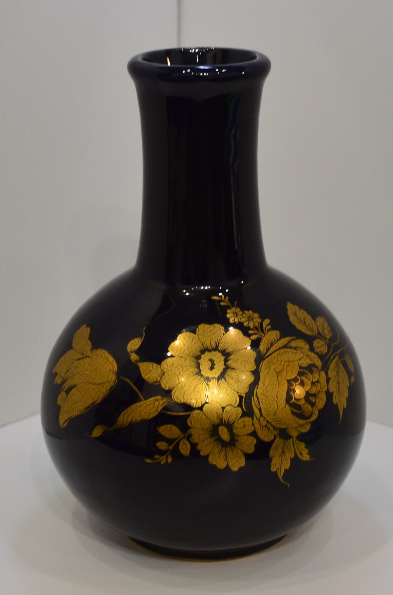 Ваза Золотые цветы (СССР,кобальт,малая) - Biblion.shop