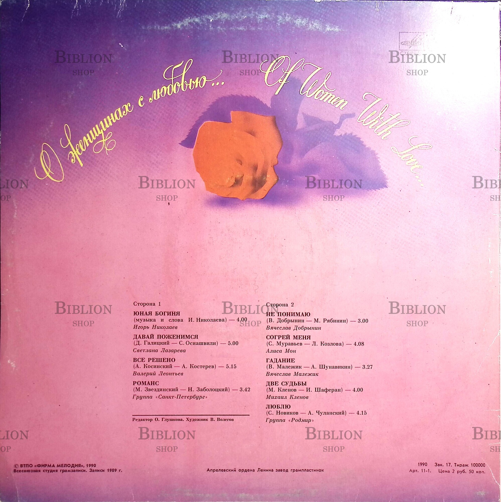 Главная Интернет-магазин Винтаж,старинные вещи, предметы интерьера Виниловые пластинки "О женщинах с любовью" (Сборник)